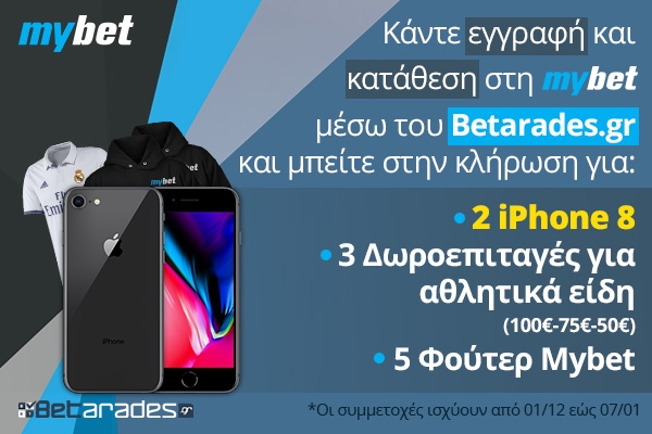 Ο διαγωνισμός πραγματοποιείται από το Betarades.gr σε συνεργασία με την Mybet και παρακάτω μπορείτε να δείτε αναλυτικά τα έπαθλα καθώς και τα βήματα που πρέπει να ακολουθήσετε για να πάρετε μέρος!