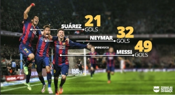 Την μυθική τριάδα των Μέσι-Ετό-Ανρί, κατάφεραν να ξεπεράσουν η νέα τριπλέτα της Μπαρτσελόνα Μέσι-Σουάρεζ-Νεϊμάρ, φθάνοντας τα 102 γκολ μέσα σε μία σεζόν!