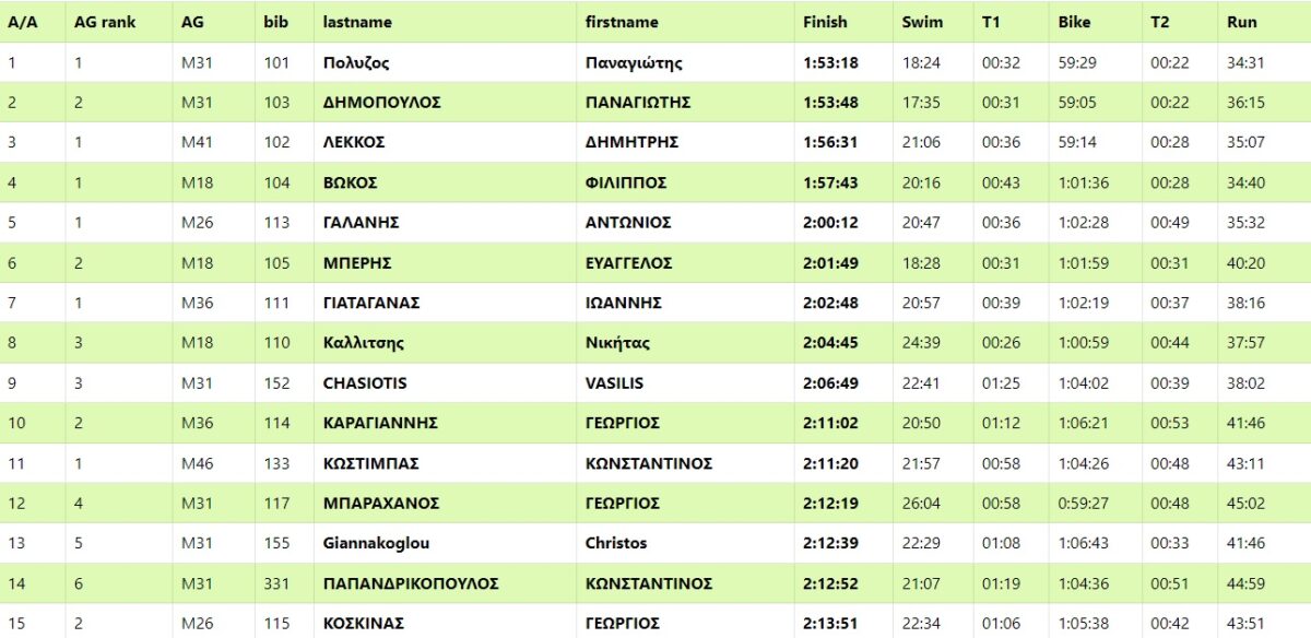 Αξίζει να σημειώσουμε ότι ειδικότερα ο χρόνος της ποδηλασίας του ήταν τόσο καλός που τον έφερε στην 3η θέση σε εκείνο το κομμάτι του αγώνα. Για την ιστορία στην πρώτη θέση τερμάτισε ο Παναγιώτης Πολύζος με χρόνο 1.53.18 και δεύτερος ο Παναγιώτης Δημόπουλος με χρόνο 1:53:48.