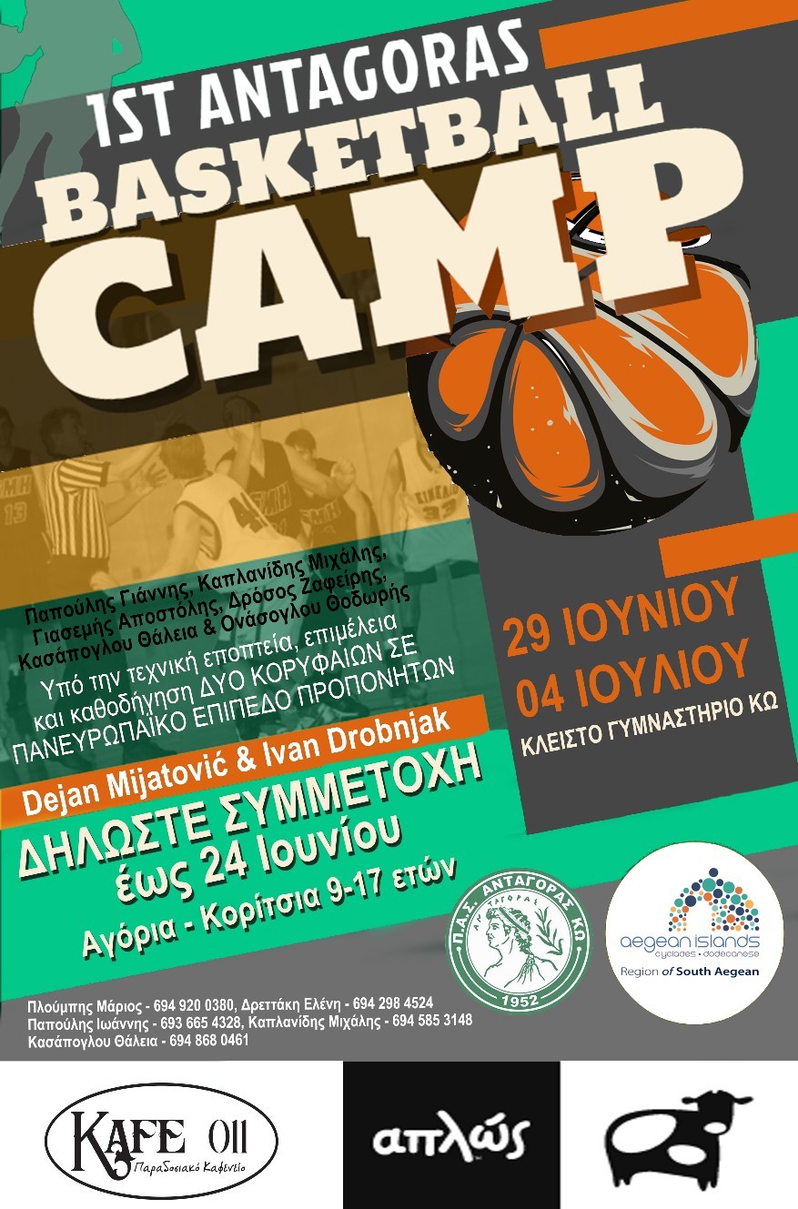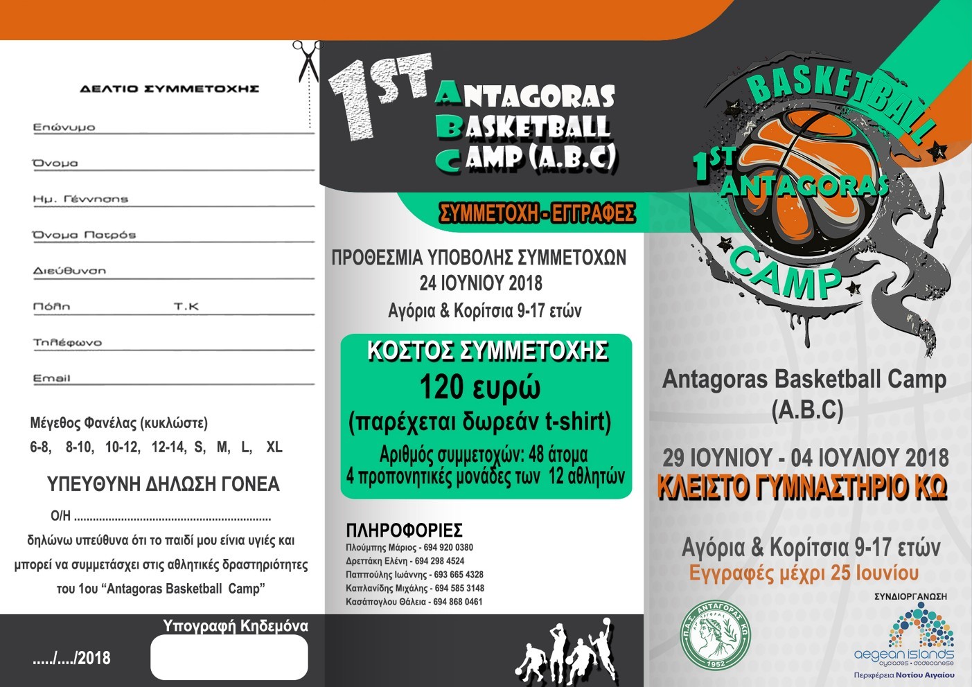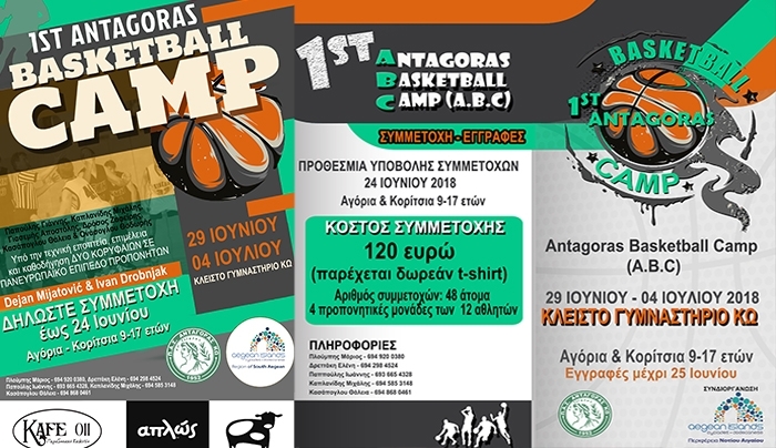 Ο Π.Α.Σ. Ανταγόρας Κω διοργανώνει στο Κλειστό Γυμναστήριο Κω, από 29 Ιουνίου 2018 έως και 04 Ιουλίου 2018, το 1ο Antagoras Basketball Camp (A.B.C).