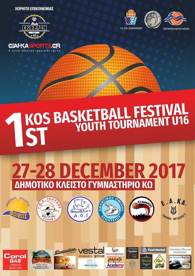 Ο Α.Σ. Φοίβος Κω, στο πλαίσιο της συνεχούς προσπάθειας που καταβάλει, για την ανάπτυξη του αθλήματος της καλαθοσφαίρισης, διοργανώνει σε συνεργασία με την Περιφέρεια Νοτίου Αιγαίου, την Περιφερειακή ενότητα Κω και τον Δ.Ο.Π.Α.Β.Σ του Δήμου Κω, διήμερο τουρνουά καλαθοσφαίρισης στις 27 και 28 Δεκεμβρίου 2017 με την ονομασία “Kos Basketball Festival” για αγόρια κατηγορίας παίδων, με τη συμμετοχή 6 ομάδων.