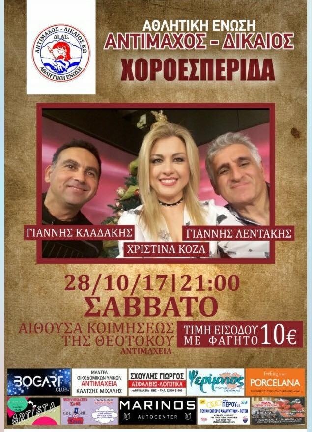 Αύριο το βράδυ θα πραγματοποιηθεί η χοροεσπερίδα που διοργανώνει ο ΔΙ.ΑΣ στην αίθουσα Κοιμήσεως της Θεοτόκου στην Αντιμάχεεια.