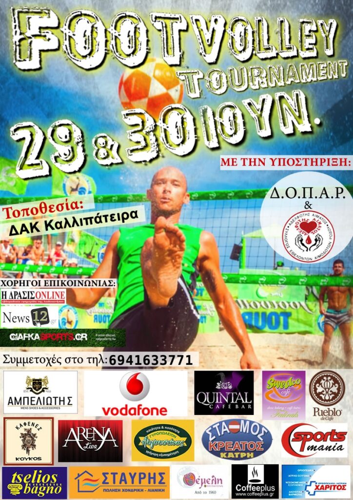 Το ερχόμενο Σαββατοκύριακό θα γίνει στην Ρόδο το τουρνουά ποδοβόλει το οποίο σχετίζεται άμεσα με το Beach Soccer Volleyball που θα γίνει στον Μύλο από 3 Ιουλίου. Το ζευγάρι του τελικού που θα προκύψει απ’ την Ρόδο θα έρθει στο νησί μας και θα πάρει μέρος και στο τουρνουά που θα γίνει εδώ.
