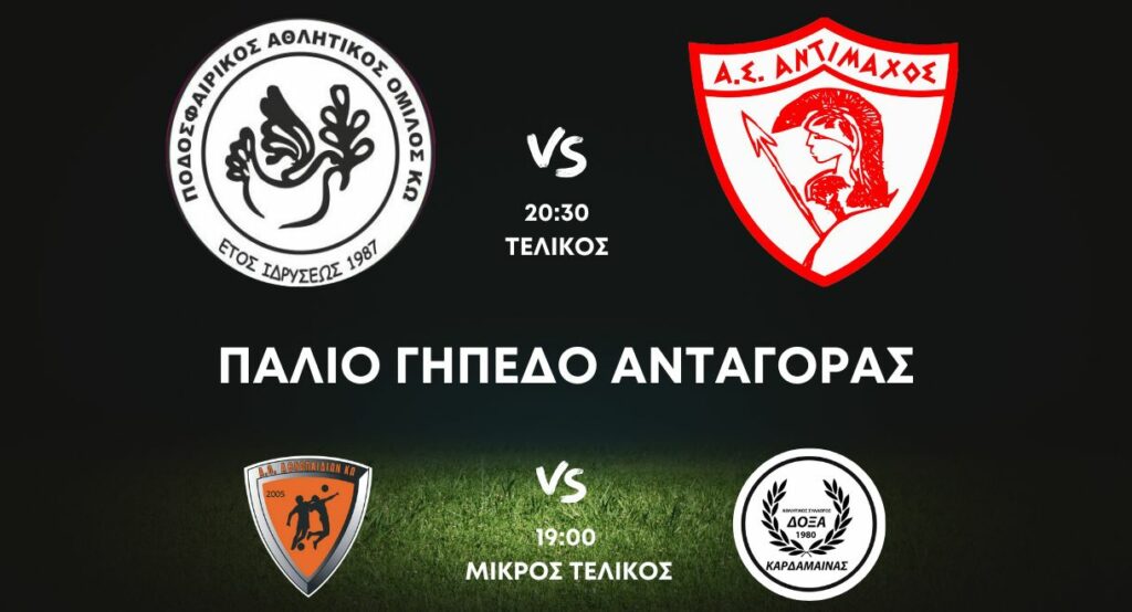 Σήμερα θα ολοκληρωθεί το 2ο κύπελλο βετεράνων Κω με την διεξαγωγή του μικρού και του μεγάλου τελικό στο παλιό γήπεδο Ανταγόρας. Αρχικά στις 19:00 ο Α.Ο Αθλοπαιδιών Κω θα αντιμετωπίσει την Δόξα Καρδάμαινας στον μικρό τελικό ενώ στην συνέχεια θα έχουμε επανάληψη του περσινού τελικού ανάμεσα σε ΠΑΟΚ Κω και Αντίμαχο.