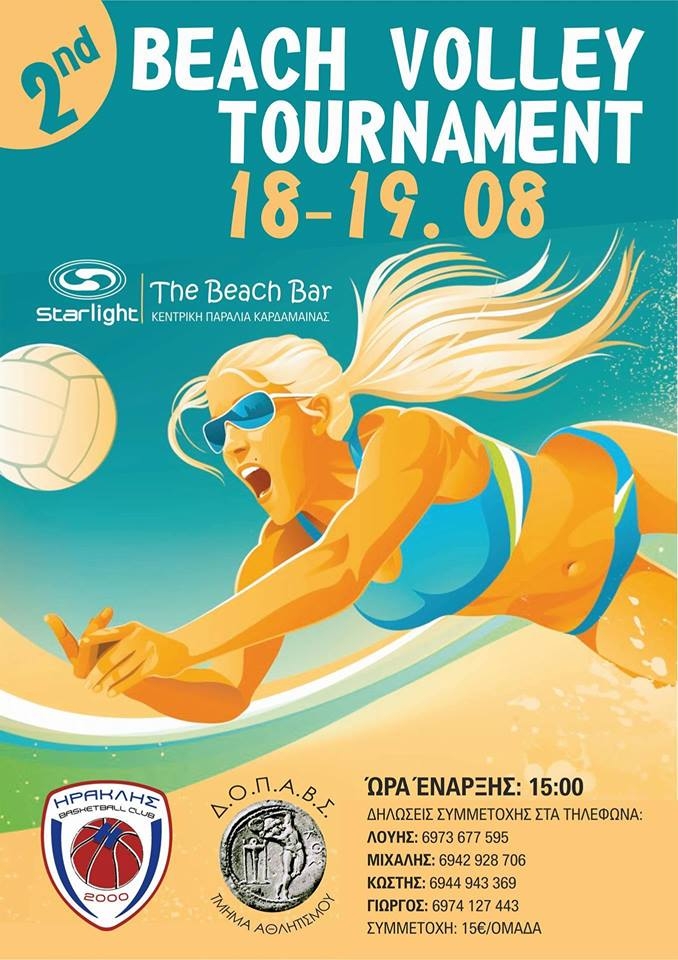 Για δεύτερη συνεχόμενη χρονιά ο Ηρακλής 2000 διοργανώνει τουρνουά Beach Volley στην κεντρική παραλία της Καρδάμαινας 18 και 19 Αυγούστου. Δηλώστε την ομάδα σας στα παρακάτω τηλέφωνα και σας περιμένουμε να παίξουμε και να διασκεδάσουμε σε καλοκαιρινούς ρυθμούς.