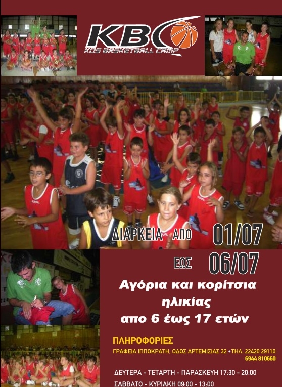 To 9o Kos basketball Camp είναι γεγονός. Οι προπονητές καλαθοσφαίρισης του νησιού σε συνεργασία με το ΔΟΠΑΒΣ και τα σωματεία καλαθοσφαίρισης της Κω προσφέρουν στα παιδιά μία εκπληκτική ευκαιρία να περάσουν έξι ημέρες γεμάτες προπόνηση, διασκέδαση, δώρα και πολλές εκπλήξεις. Από Δευτέρα 1 Ιουλίου μέχρι Σάββατο 6 Ιουλίου 2013 και από τις 9 – 13:30 σας περιμένουμε όλους και όλες στο κλειστό γυμναστήριο Κω και στο γυμναστήριο του Ιπποκρατείου Γυμνασίου