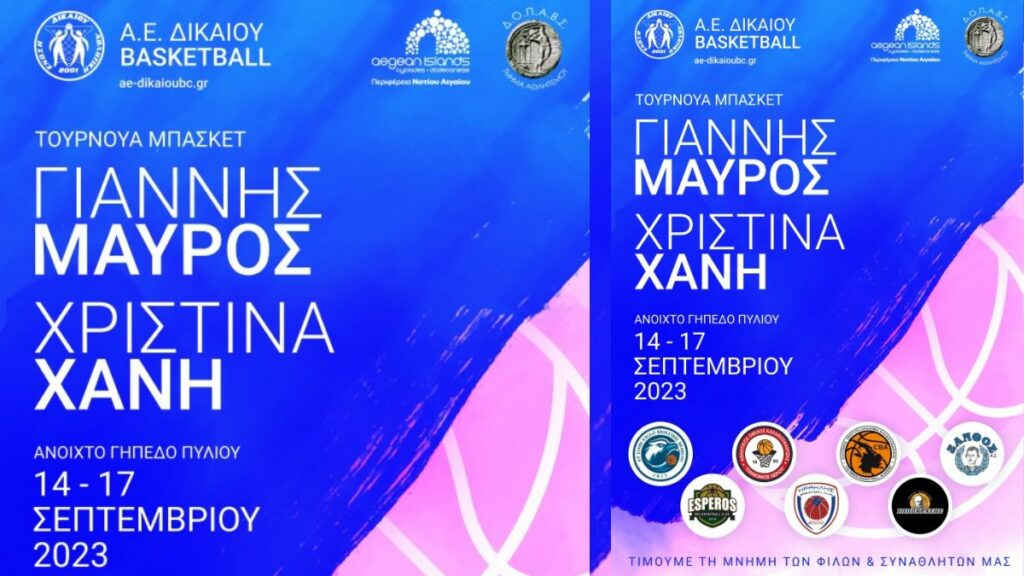 Όλα έτοιμα είναι στο ανοιχτό γήπεδο Πυλίου για το τουρνουά της Α.Ε Δικαίου στην μνήμη του Γιάννη Μαύρου και της Χριστίνας Χανή. Οι «κυανόλευκοι» τιμούν για ακόμη μια φορά τα παιδιά τους και το παρών θα δώσουν στο τουρνουά ο Έσπερος, ο Πανιώνιος Λέρου, ο Ξάνθος Πάτμου, η KP Sinav Coleji, η Ακαδημία Καλύμνου και ο Ηρακλής 2000.