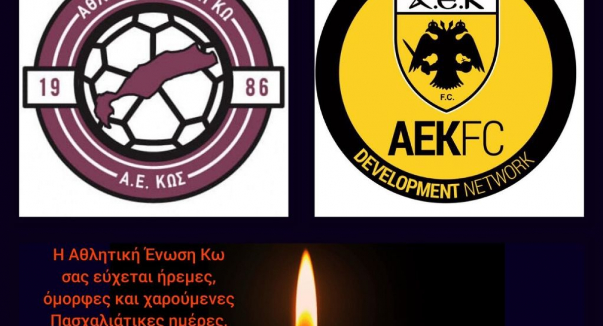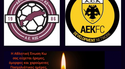 “Η Αθλητική Ένωση Κω σας εύχεται ήρεμες, όμορφες και χαρούμενες Πασχαλιάτικες ημέρες με υγεία και αγάπη. Καλή Ανάσταση σε όλους”