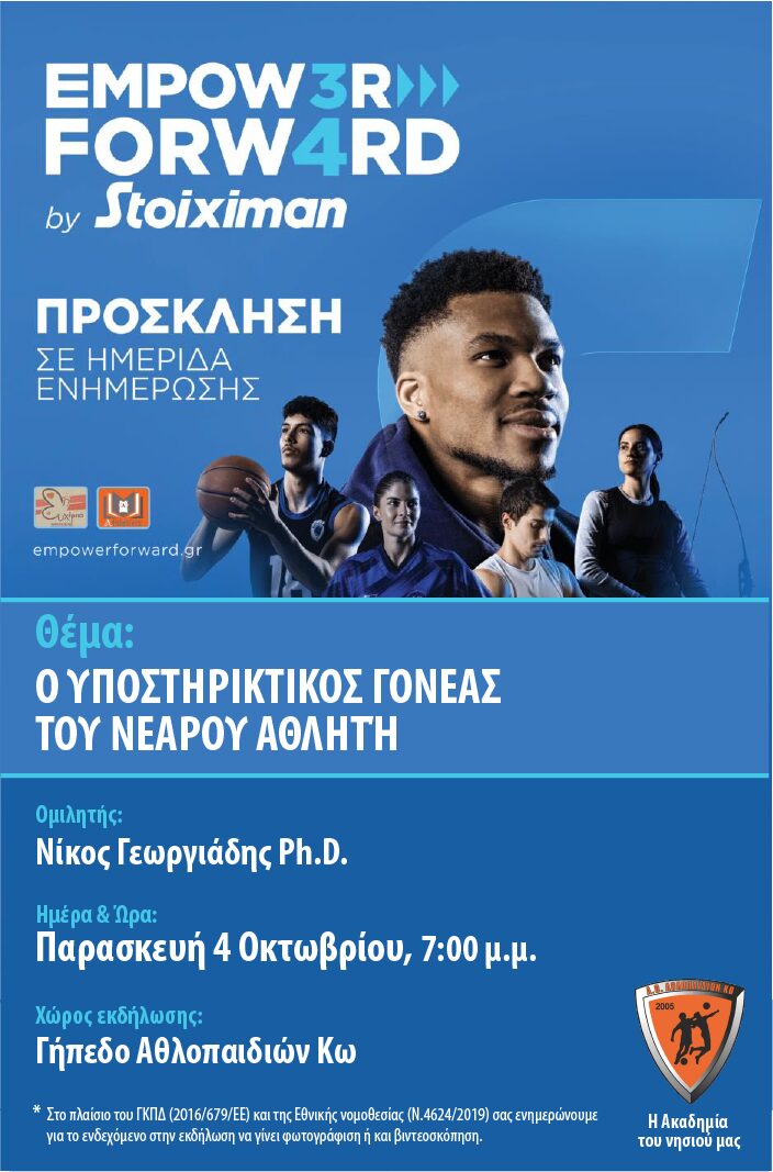 Η Stoiximan, σε συνεργασία με τον Γιάννη Αντετοκούνμπο, υλοποιεί το Empower Forward, μια πρωτοποριακή πρωτοβουλία Εταιρικής Υπευθυνότητας με στόχο την πρόκληση θετικής αλλαγής και την ενδυνάμωση ατόμων σε όλη την Ελλάδα σε ένα ταξίδι γνώσης, εμπειριών και πρακτικής υποστήριξης, με στόχο την ενδυνάμωση αθλητών και αθλούμενων εντός και εκτός γηπέδων.
