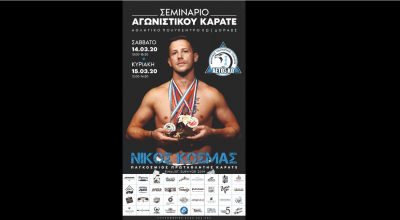 Με μεγάλη χαρά σας προσκαλούμε στο σεμινάριο αγωνιστικού καράτε με καλεσμένο τον Νίκο Κοσμά.