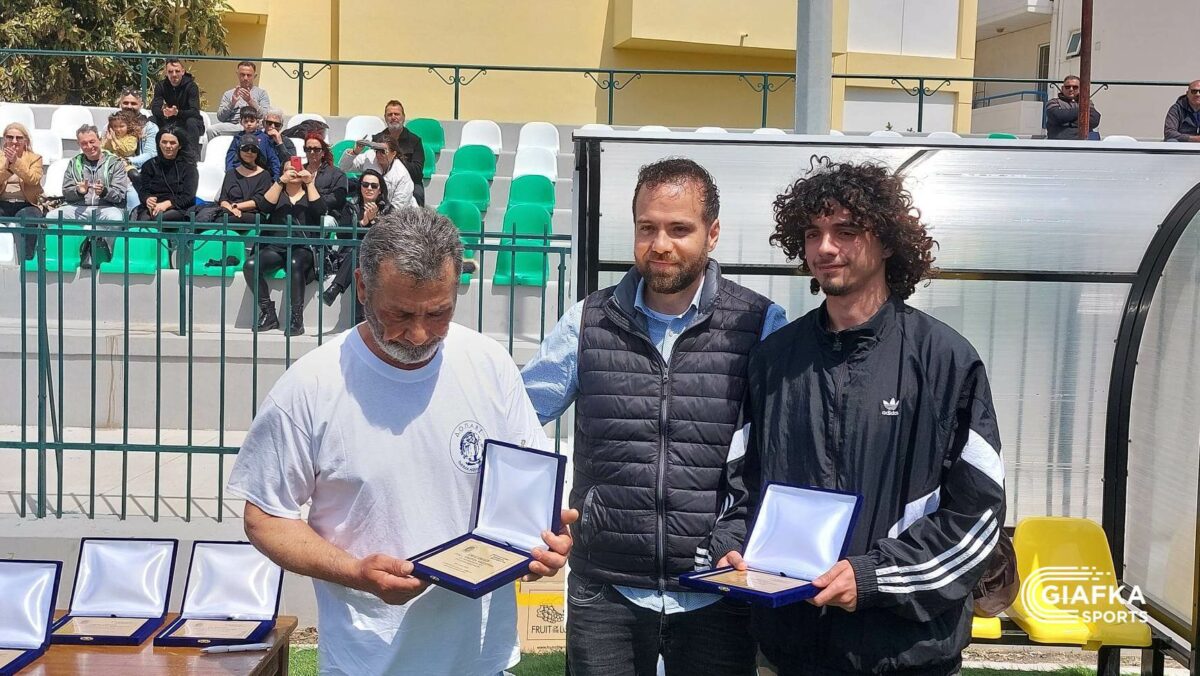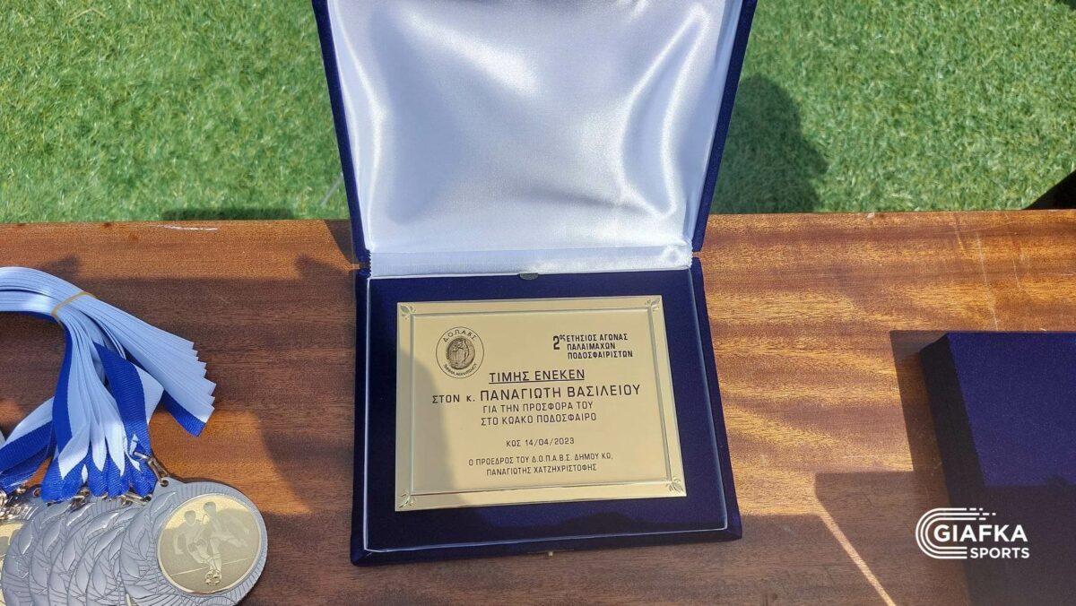 Στο ημίχρονο τιμήθηκαν για την προσφορά τους στο Κωακό ποδόσφαιρο, ο Δημήτρης Δρόσος και ο Αντρέας Καΐσερλης καθώς και ο Παναγιώτης Βασιλείου ενώ τις τιμητικές πλακέτες για τον Πέτρο Καΐσερλη και τον Δημήτρη Ρούφα παρέλαβαν μέλη της οικογένειας τους.