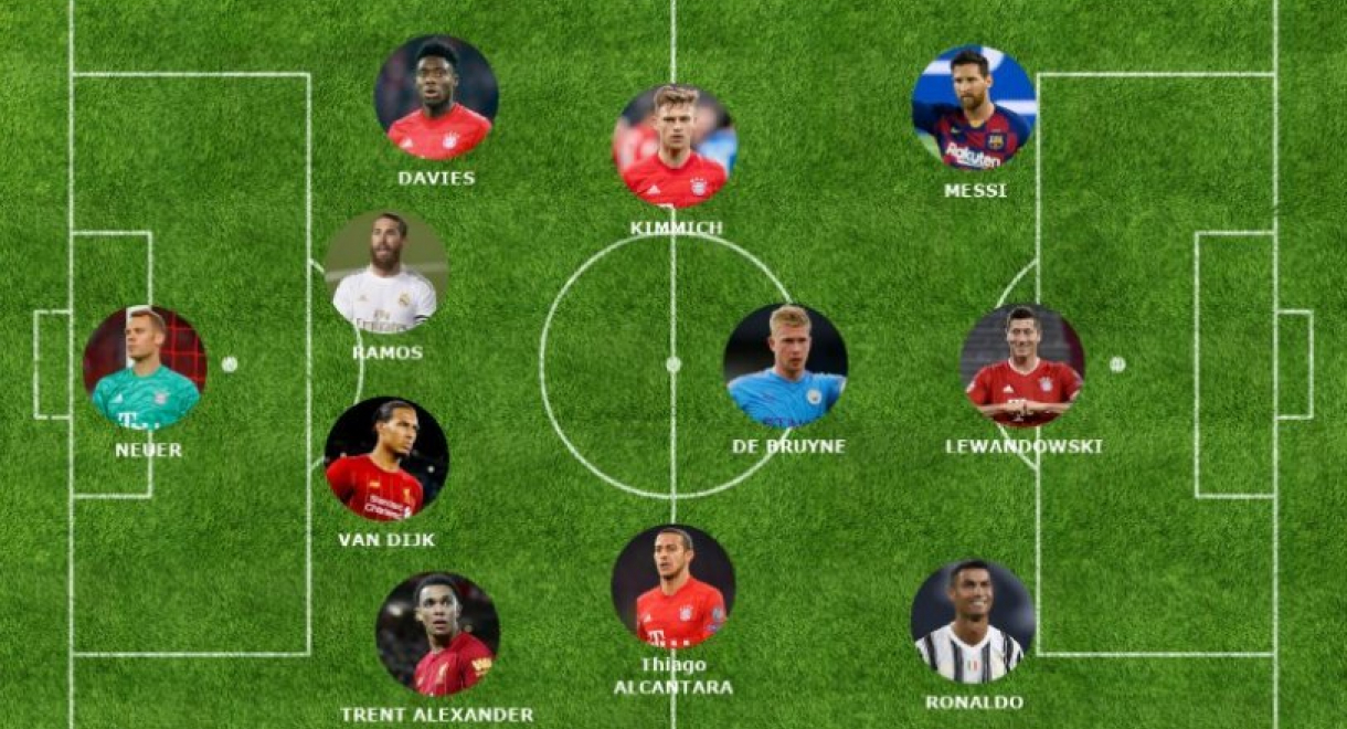 Η IFFHS έχει τους δικούς της αλγόριθμους, ώστε να βγάζει σχετικά αποτελέσματα και δεν διεξάγει ψηφοφορίες. Με βάση αυτούς λοιπόν, επέλεξε τον Νόιερ για την εστία, τους Σέρχιο Ράμος, Φαν Ντάικ, Ντέιβις, Αλεξάντερ-Άρνολντ για την άμυνα, τους Κίμιχ, Τιάγκο, Ντε Μπρόινε για τη μεσαία γραμμή και την τρομερή τριάδα μπροστά με τους Κριστιάνο Ρονάλντο, Μέσι, Λεβαντόφσκι. Οι μισοί δηλαδή προέρχονται από την Μπάγερν που έκανε το τρεμπλ, όπως και ο προπονητής, Χάνζι Φλικ.