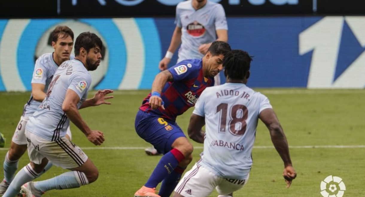 Στο 6ο λεπτό η κεφαλιά του Πικέ τράνταξε το δοκάρι του Μπλάνκο, ενώ στο 11’ μετά από φάση διαρκείας στα καρέ της Θέλτα, οι Μέσι, Σουάρες και Βιδάλ δεν μπόρεσαν να σκοράρουν. Ωστόσο στο 20ο λεπτό ο Μέσι εκτέλεσε έξυπνα ένα φάουλ και ο Σουάρες με κεφαλιά έκανες το 0-1. Στο 22’ ο Άλμπα έσωσε στη γραμμή μετά από πλασέ του Άσπας, ενώ στο 24’ ο Τερ Στέγκεν είπε όχι σε σουτ του Μπράις Μέντεθ. Στρο 33’ και στο 36’ οι Βιδάλ και Φάτι έχασαν απίθανες ευκαιρίες, όπως και ο Λίο Μέσι στο 40’.