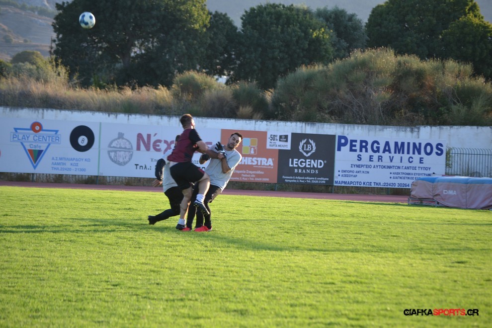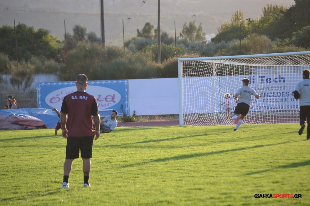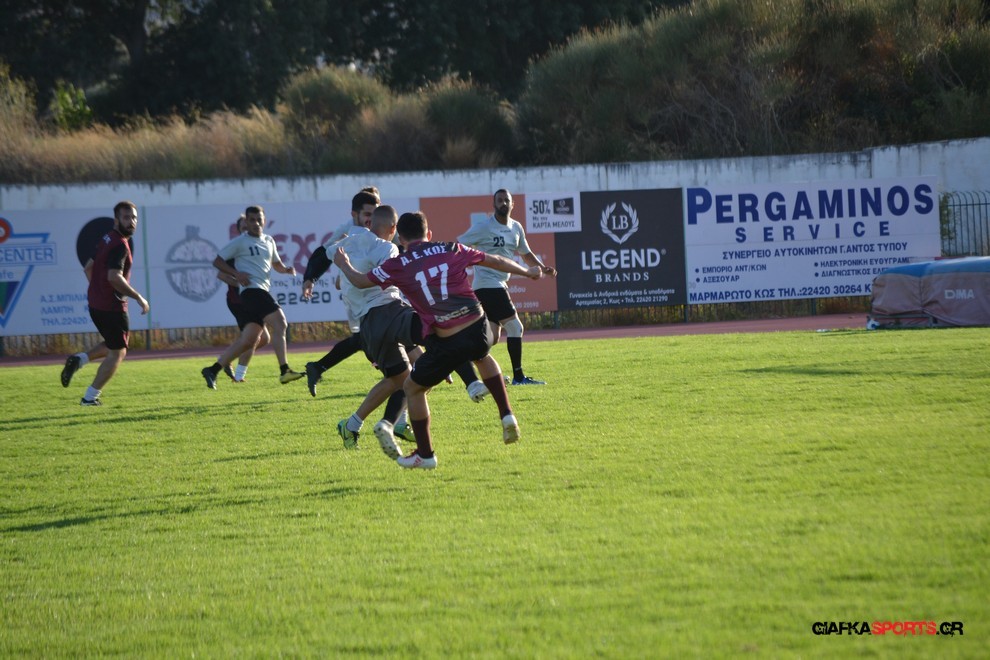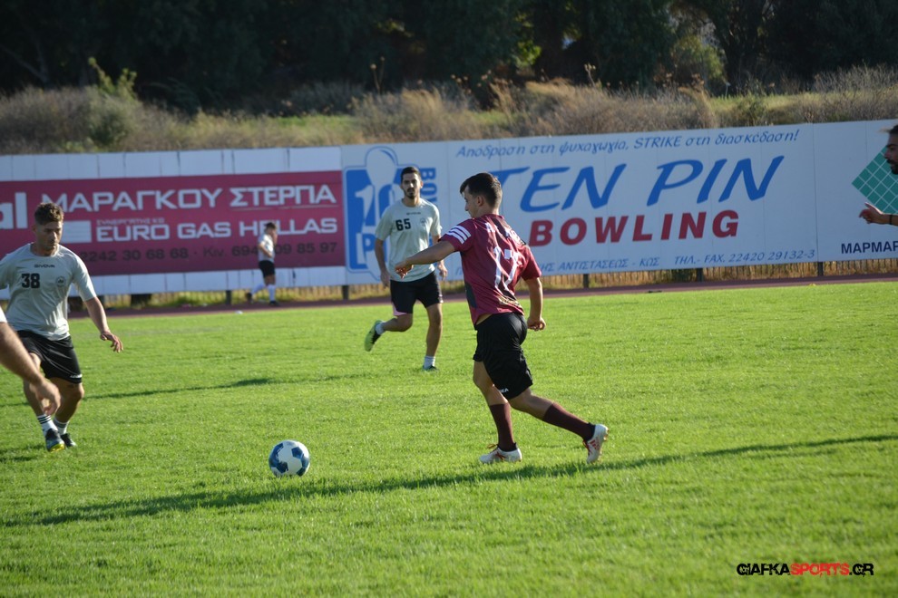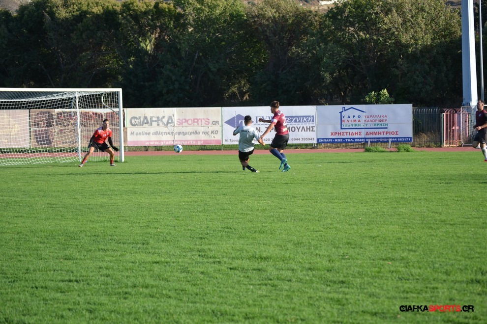 Στο πρώτο μέρος η ομάδα του ΠΑΟΚ Κω κατάφερε να πάρει προβάδισμα με τον Ζένελι για να κάνει την ανατροπή στο δεύτερο η Α.Ε Κως με δύο γκολ του Ζαίμι, ένα με πέναλτι και ένα με κεφαλιά.
