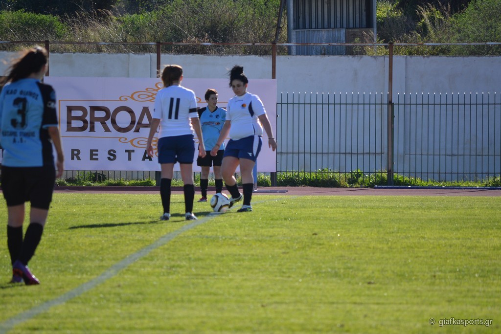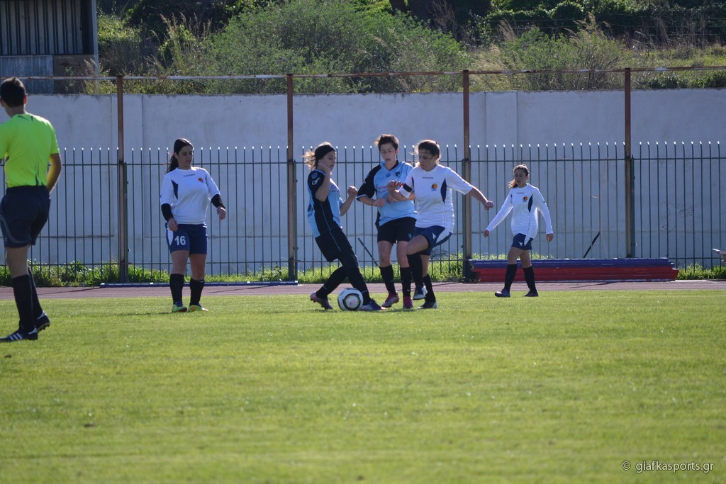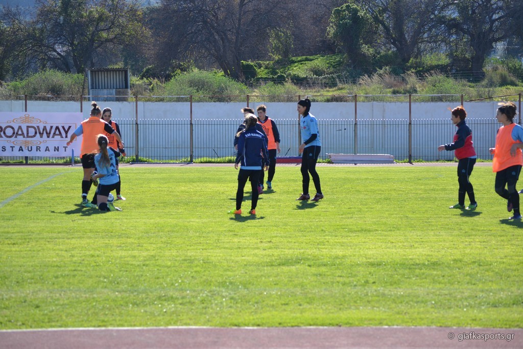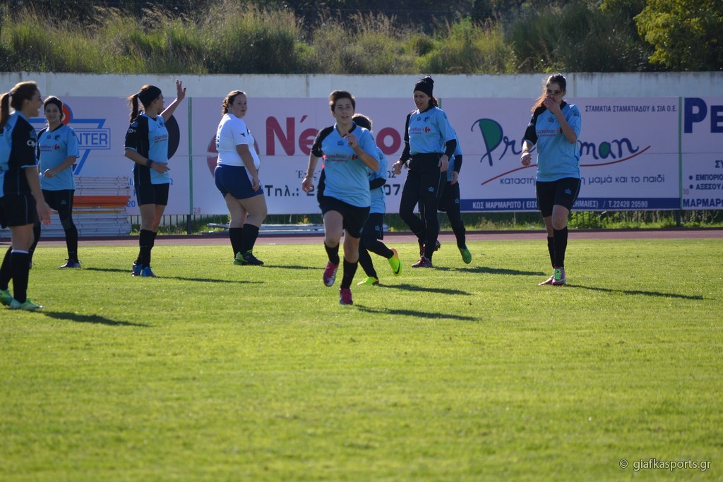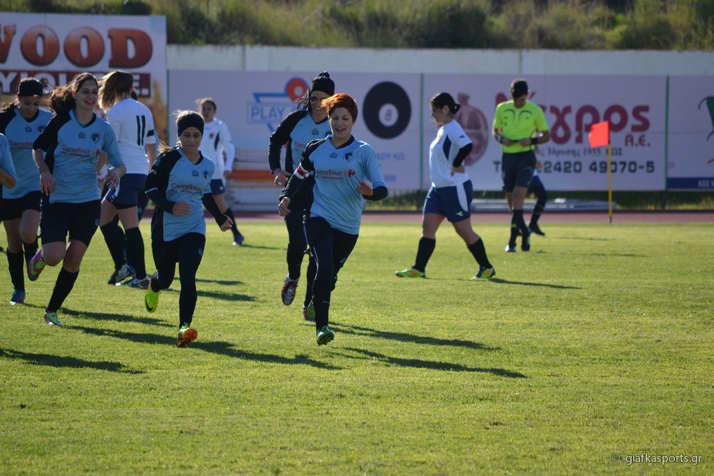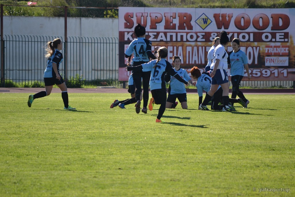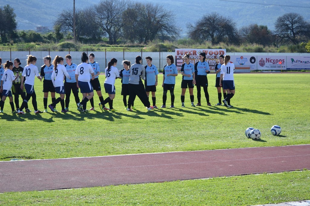 Τα γκολ άρχισαν από το 5ο λεπτό για το Φιλίνο, με την Κορκή να ανοίγει το σκορ με ένα δυνατό σουτ από τα αριστερά. Στο 14 ήρθε το δεύτερο γκολ από την Ιντζιρλή σουτάροντας ευθύβολα επίσης από τα αριστερά. Δύο λεπτά αργότερα η Νικολοπούλου κάνει το 3-0 έπειτα από εκτέλεση πέναλτι που κέρδισε η ίδια. Στο 18ο λεπτό και πάλι η Ιντζιρλή έπειτα από πολλές εναλλαγές της κατοχής της μπάλας σημειώνει το τέταρτο γκολ. Εννέα λεπτά μετά στο 27 η Κορκή μέσα από την περιοχή κάνει το 5-0 μετά από ωραίο γέμισμα της Γερασίμου. Το 6-0 ήρθε από την Γερασίμου με ένα όμορφο μακρινό σουτ στο 38. Τρία λεπτά αργότερα η Ιντζιρλή εκμεταλλεύτηκε την ευκαιρία από το δυνατό σουτ της Νικολοπούλου που χτύπησε στο οριζόντιο δοκάρι της Ορφανού και έβαλε το 7ο και τελευταίο γκολ του πρώτου μέρους.