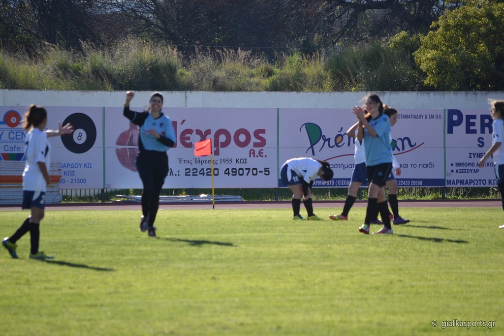 Σχεδόν σε όλη τη διάρκεια του παιχνιδιού η κατοχή της μπάλας ανήκε στα κορίτσια της Κω, με την ροδίτικη ομάδα να περιορίζεται στη θέση της άμυνας.