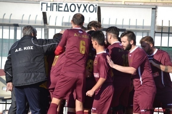Οι φιλοξενούμενοι έμειναν με δέκα αφού αποβλήθηκε με δεύτερη κίτρινη ο Καραμανώλης και η ΑΕ Κως πίεσε ακόμα πιο ψηλά για το πολύτιμο γκολ.