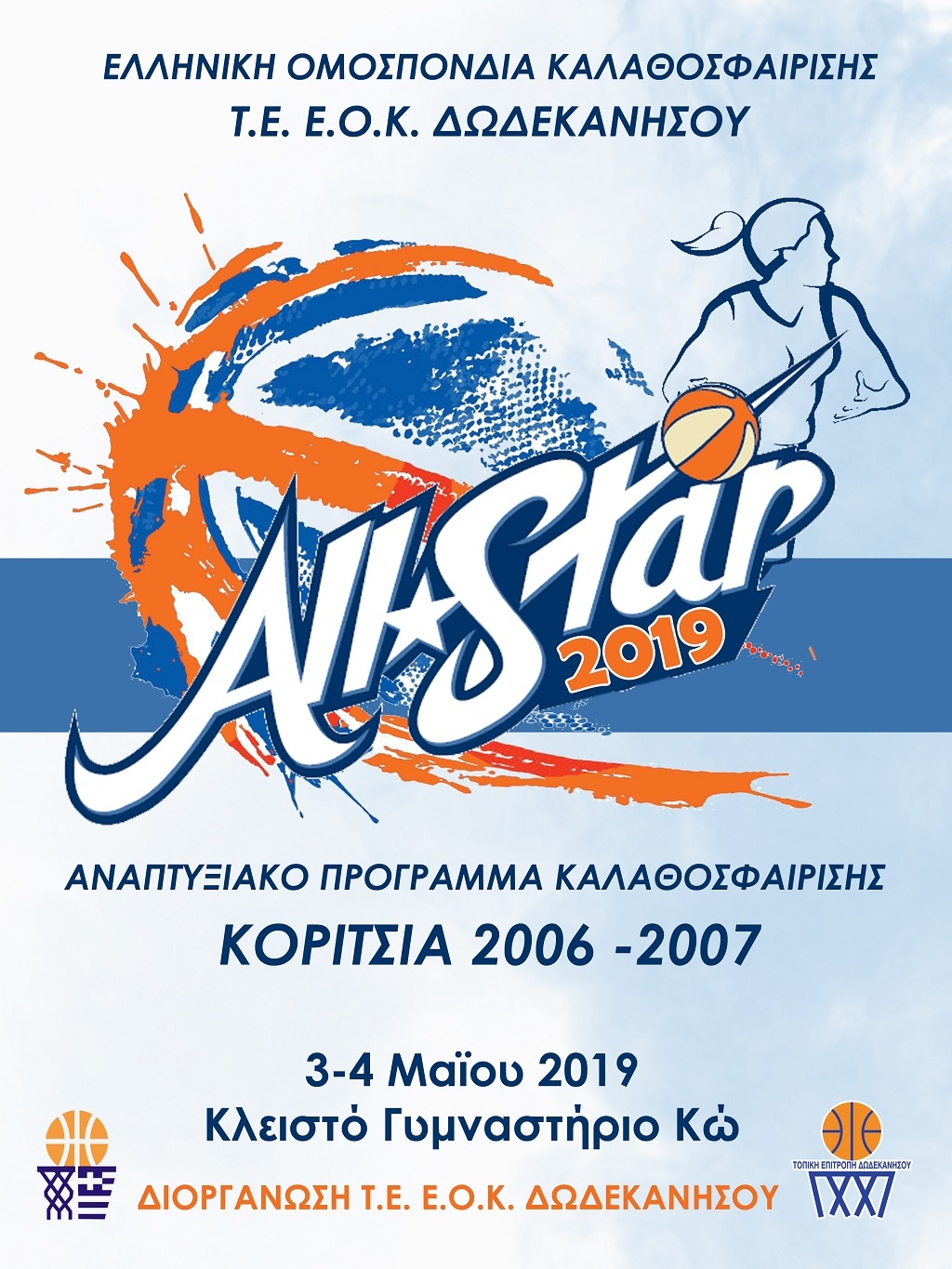 Στο πλαίσιο του αναπτυξιακού προγράμματος και σύμφωνα με την προκήρυξη ανάπτυξης της Τ.Ε. Ε.Ο.Κ. Δωδεκανήσου, διοργανώνεται στο κλειστό γυμναστήριο Κω στις 3 και 4 Μαΐου 2019 το All Star Game κοριτσιών Δωδεκανήσου 2019, με την συμμετοχή 30 αθλητριών, που γεννήθηκαν τα έτη 2006-2007 .