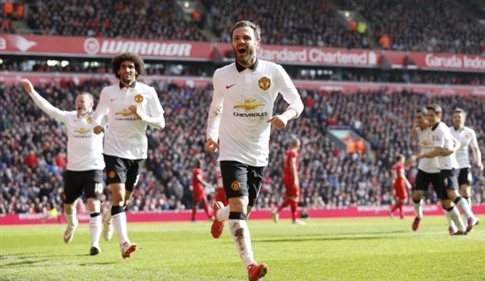 Οι «κόκκινοι διάβολοι» επιβλήθηκαν 2-1 στο «Άνφιλντ» χάρη σε δύο γκολ του Χουάν Μάτα και απέκτησαν προβάδισμα πέντε βαθμών έναντι των «κόκκινων» στη «μάχη» για την έξοδο στο νέο Champions League.