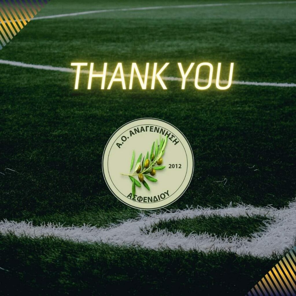 Ανακοίνωση εξέδωσε η Αναγέννηση Ασφενδιού με την οποία ευχαρίστησε τον φυσιοθεραπευτή Γιάννη Μάμμη για την προσφορά των υπηρεσιών του προς τον σύλλογο.