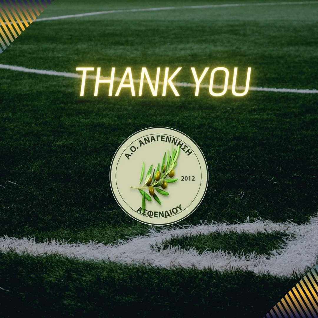 Ο Α.Ο Αναγέννηση Ασφενδιού θα ήθελε να ευχαριστήσει και δημόσια τον φυσιοθεραπευτή Γιάννη Μάμμη για την αφιλοκερδή προσφορά των υπηρεσιών του προς τον σύλλογο μας.
