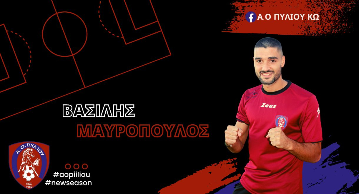 «O A.Ο Πυλίου Κω ανακοινώνει την απόκτηση του Bασίλη Μαυρόπουλου για την αγωνιστική περίοδο 2022-2023. Ο 29χρονος μέσος έχει αγωνιστεί μεταξύ άλλων σε Α.Ο Θήβα, Παναιγιάλειο, Δόξα Μανωλάδας, Α. Ε Ερμιονίδας, Αστέρα Ιτέας, Νέα Αρτάκη ενώ μέχρι πρότινος αγωνιζόταν στον ΠΑΟ Βάρδας και έχει αρκετές συμμετοχές σε Football League και Γ’ Εθνική. Τον καλωσορίζουμε στην ομάδα μας και του ευχόμαστε μια σεζόν χωρίς τραυματισμούς και μαζί να πετύχουμε τους στόχους μας».