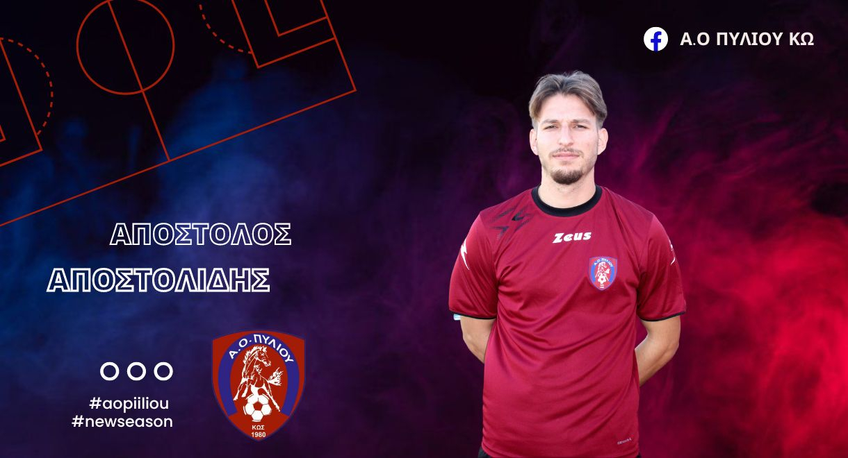 Mε αφορμή και την ολοκλήρωση της μεταγραφικής περιόδου ο Α.Ο Πυλίου ανακοινώνει και επίσημα τους ποδοσφαιριστές που βρίσκονται στο φετινό ρόστερ της ομάδας. Καλωσορίζουμε τον Αποστόλη Αποστολίδη στον σύλλογο μας για την αγωνιστική περίοδο 2022-2023. Ο 23χρονος αγωνίζεται ως επιτελικός κυρίως μέσος και παρά το νεαρό της ηλικίας του έχει αρκετές παρουσίες στο πρωτάθλημα της Γ’ Εθνικής. Έχει αγωνιστεί με ιδιαίτερη επιτυχία στον Αγροτικό Αστέρα, στον ΠΑΟ Κουφαλίων, στην Δόξα Δράμας, παλιότερα στην Θύελλα Περιστερώνα ενώ μέχρι πρότινος αγωνιζόταν στην ομάδα του Εθνικού Σοχού.