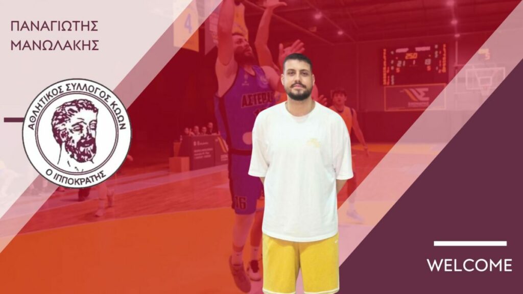 «Ο Α.Σ. Κώων Ιπποκράτης είναι στην ευχάριστη θέση να ανακοινώσει την απόκτηση του σέντερ Παναγιώτη Μανωλάκη (24 ετών, 2,05 μ.). Ο δυναμικός Μεσσήνιος center έρχεται στην Κω για να θωρακίσει τη ρακέτα μας και να δώσει δύναμη και ενέργεια στη front line.