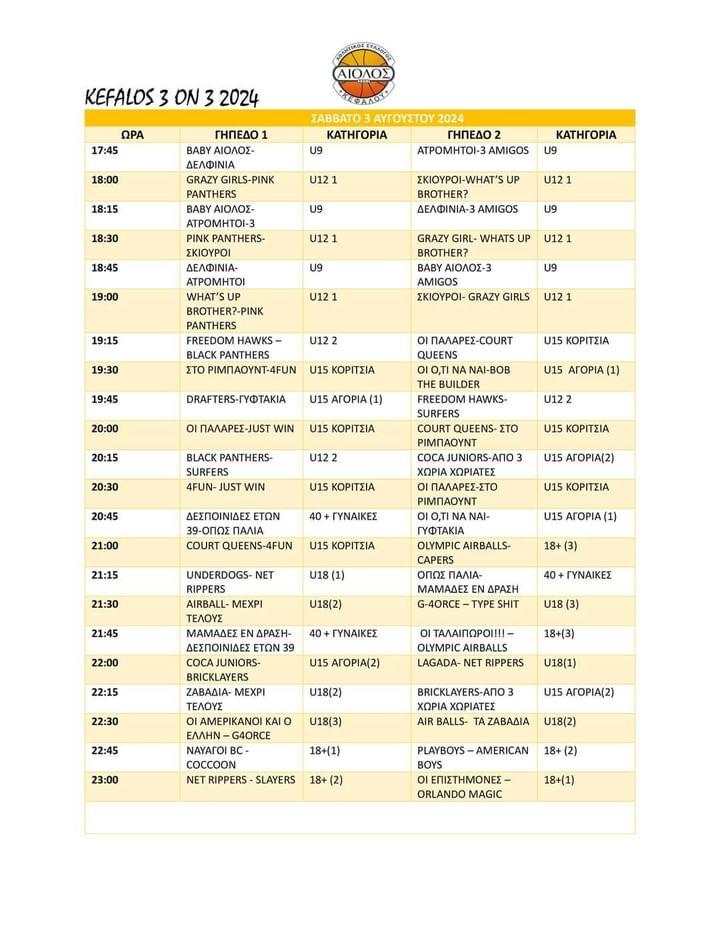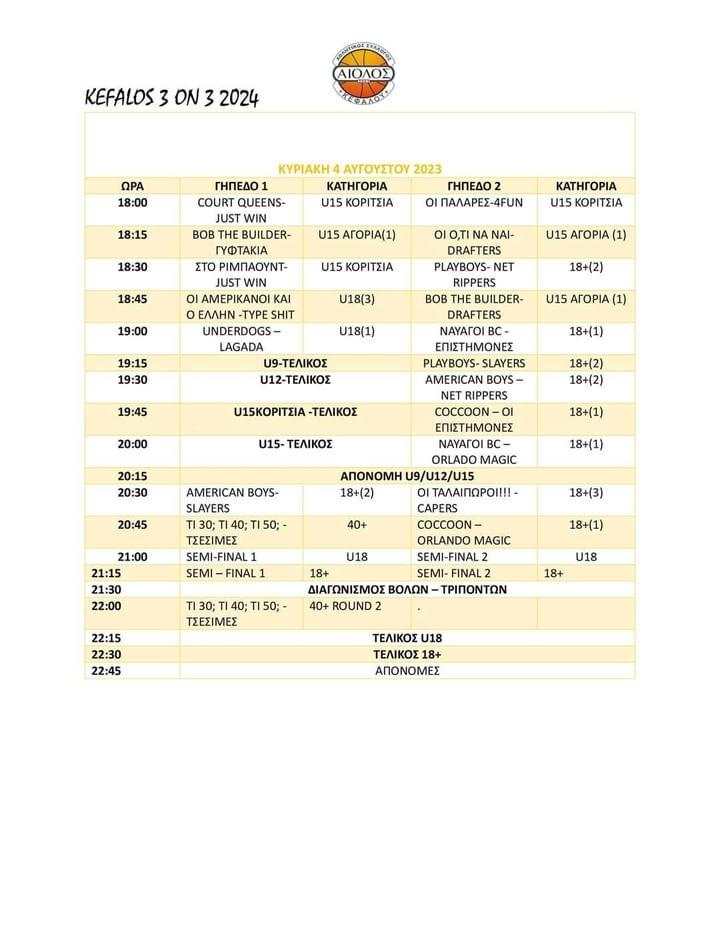 Το Σαββατοκύριακο 3 και 4 Αυγούστου θα διεξαχθεί στο ανοιχτό γήπεδο Κεφάλου το 2ο 3X3 Basketball Tournament απ’ τον Αίολο σε μια διοργάνωση με αρκετές συμμετοχές την φετινή χρονιά.