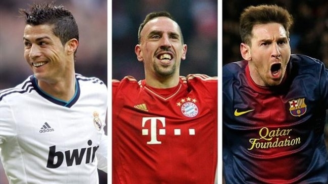 Ο Φρανκ Ριμπερί που αναδείχθηκε κορυφαίος Ευρωπαίος ποδοσφαιριστής λόγω του treble που κατέκτησε με την ομάδα της Μπάγερν, βρίσκεται στην τρίτη θέση της κατάταξης. Ο Γάλλος εξτρέμ βρίσκεται πίσω απ’ τον πρώτο στη λίστα Κριστιάνο Ρονάλντο και τα 67 γκολ που έχει σημειώσει μέσα στο 2013 και τον Λίονελ Μέσι που ακολουθεί τον Πορτογάλο.