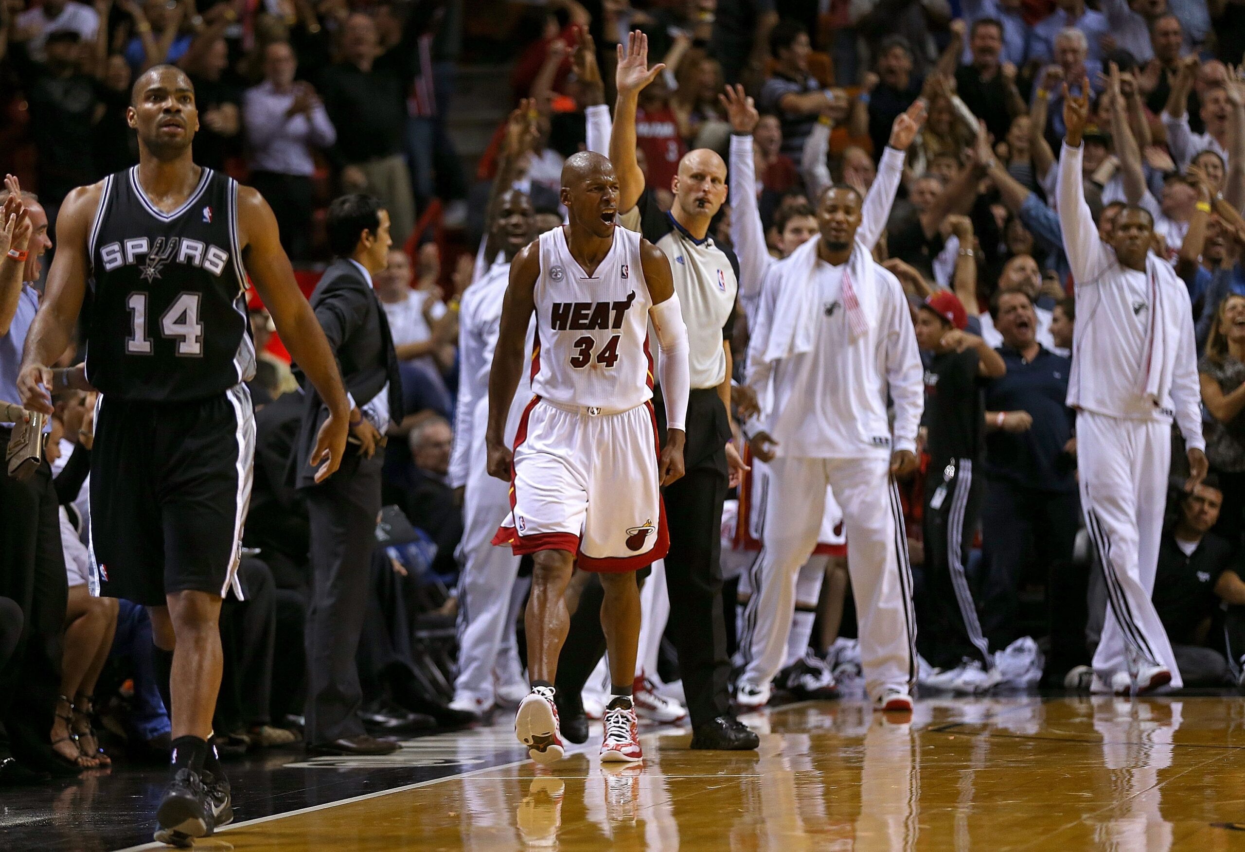 Ένα τρίποντο του Ρέι Άλεν 22,6” πριν το τέλος ξεκόλλησε το Μαϊάμι από την ισοπαλία και αποδείχτηκε καθοριστικό στη νίκη με 105-100 επί των Σπερς. Οι φιλοξενούμενοι αγωνίστηκαν χωρίς τους Τιμ Ντάνκαν, Τόνι Πάρκερ, Μάνου Τζινόμπιλι και Ντάνι Γκριν μετά από απόφαση του προπονητή Γκρεγκ Πόποβιτς να τους στείλει στο Σαν Αντόνιο για ξεκούραση. Αυτό, ωστόσο, προκάλεσε την αντίδραση του κομισάριου του ΝΒΑ, Ντέιβιντ Στερν, ο οποίος προανήγγειλε τιμωρία των «σπιρουνιών». «Ζητώ συγγνώμη από τους φίλους του ΝΒΑ. Ήταν μία απαράδεκτη κίνηση από τους Σπερς που θα τιμωρηθούν», ανέφερε ο Στερν.
