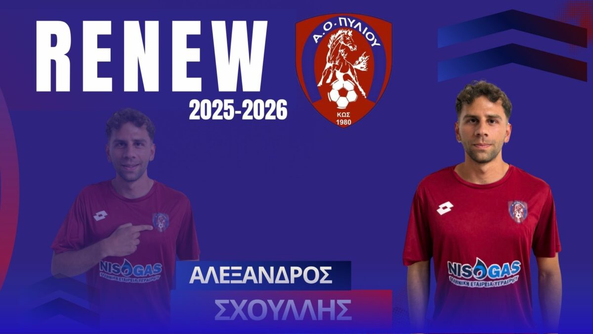 «Ο Α.Ο Πυλίου Κω με ιδιαίτερη χαρά ανακοινώνει την παραμονή του Αλέξανδρου Σχουλλή στην ομάδα μας και την αγωνιστική περίοδο 2025-2026. Χαιρόμαστε που ένας ποδοσφαιριστής που έχει την δική του διαδρομή και έχει προσφέρει τα μέγιστα στον σύλλογο μας θα είναι και φέτος μέλος της οικογένειας μας. Του ευχόμαστε μια γεμάτη σεζόν χωρίς τραυματισμούς».
