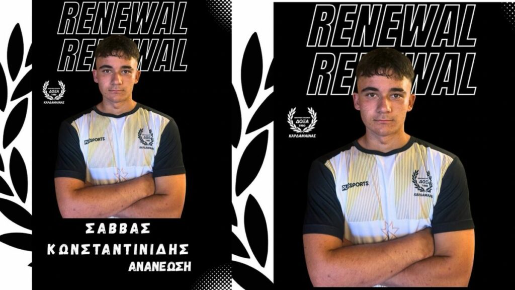 Η Δόξα Καρδάμαινας ανακοίνωσε την ανανέωση της συνεργασίας της με τον νεαρό ποδοσφαιριστή Σάββα Κωνσταντινίδη που ήταν ο αρχηγός της ομάδας την περασμένη σεζόν στην Κ-16.