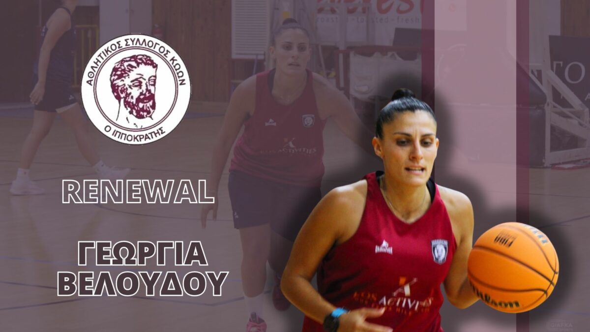 «Ο Α.Σ. Κώων Ιπποκράτης ανακοινώνει την ανανέωση της συνεργασίας του με τη Γεωργία Βελούδου. Η έμπειρη πλέι μέικερ αποτέλεσε έναν από τους βασικούς συντελεστές της περσινής πορείας και της ανόδου της ομάδας μας στην Α2 Εθνική Κατηγορία, προσφέροντας ποιότητα, καθοδήγηση και ηγετική παρουσία στο παρκέ.