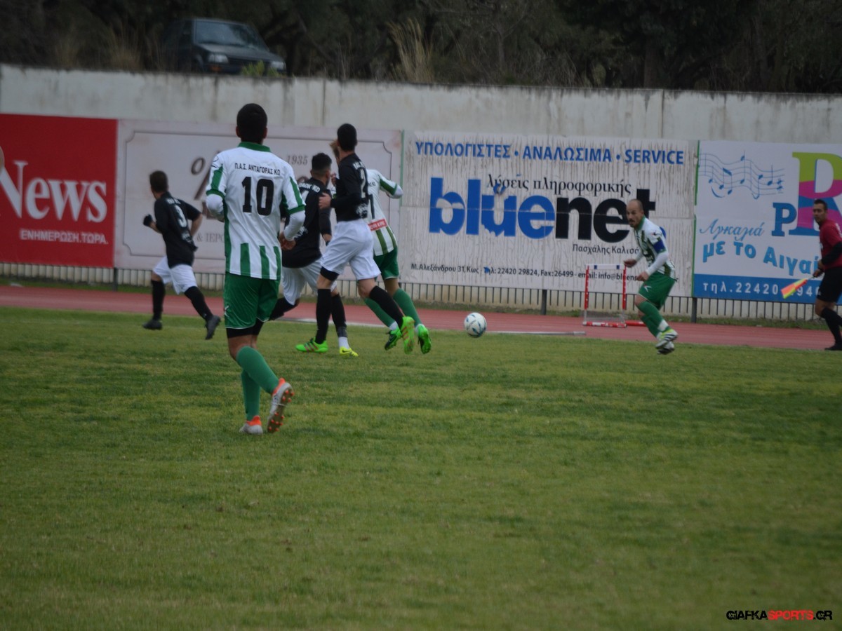 Ο Ανταγόρας μπορεί να μην ξεκίνησε καλά το φετινό πρωτάθλημα ωστόσο όσο περνούν οι αγωνιστικές δείχνει να ανεβαίνει. Η ομάδα του Βασίλη Τσιλιώνη μετά την ισοπαλία με την Α.Ε Κω, και τη νίκη με τον Δίκαιο πήρε άλλη μια νίκη με 1-2 κόντρα στον ΠΑΟΚ Κω με σκόρερ τους Πέτσα και Ζαμάγια κάνοντας μάλιστα και ανατροπή αφού οι γηπεδούχοι είχαν προηγηθεί με τον Τζουλιάνο Κοτσάκι. Με δέκα ποδοσφαιριστές ολοκλήρωσε το ματς ο ΠΑΟΚ Κω αφού αποβλήθηκε με δεύτερη κίτρινη ο Χρήστος Κουβαράς στο 78.