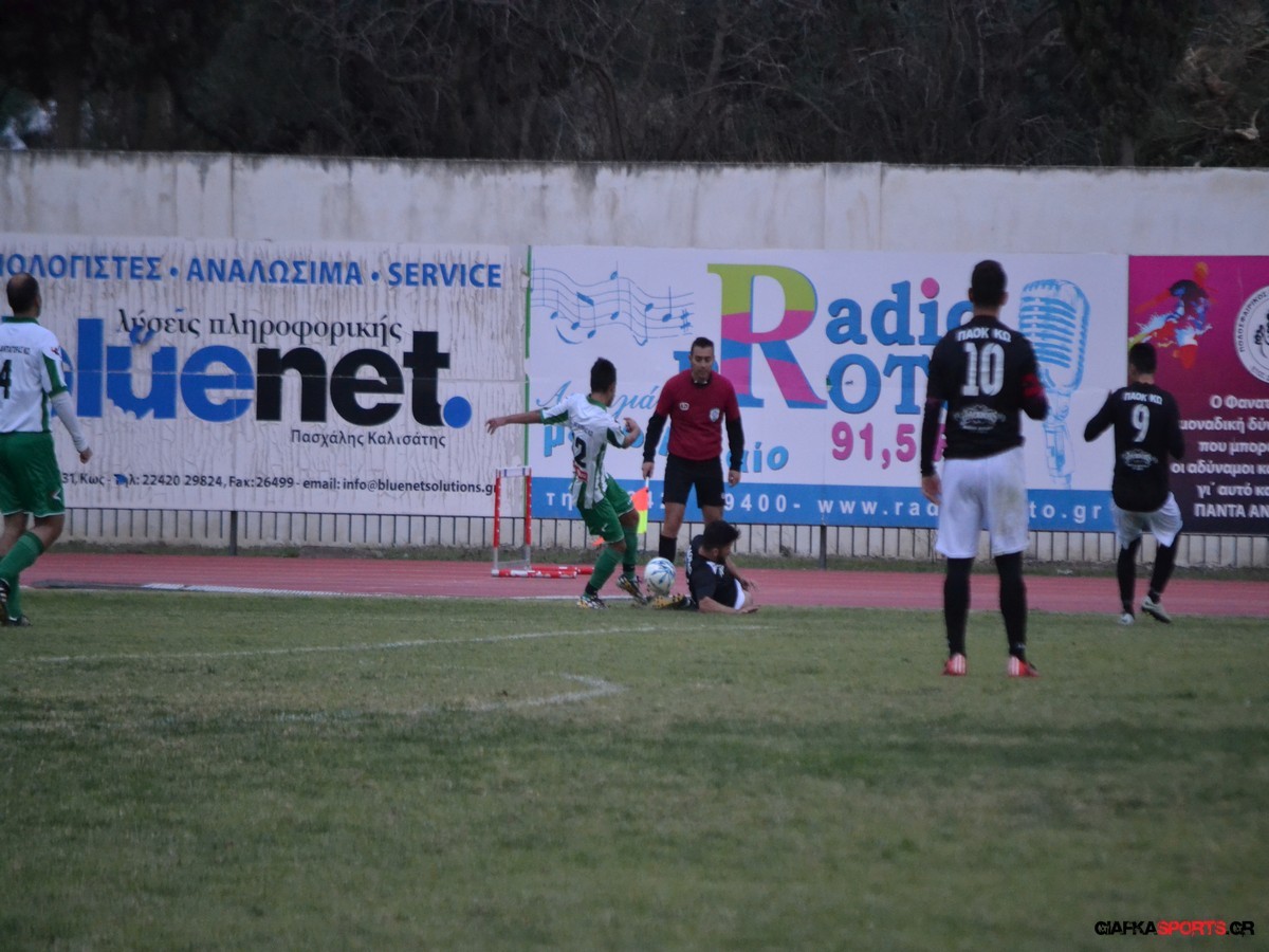 ΠΑΟΚ Κω: Κονταντώνης, Κατσιούλης, Μαστορόπουλος, Καματερός, Ρείσης, Ξυπολιτάς Γ. (75΄Ρήγας), Σιουλάς (46’ Κουβαράς), Κοτσάκι Ε. (55’ Κοτσάκι Τ.), Τσιμιτσέλης, Καίσερλης, Χονδρομπίλας.