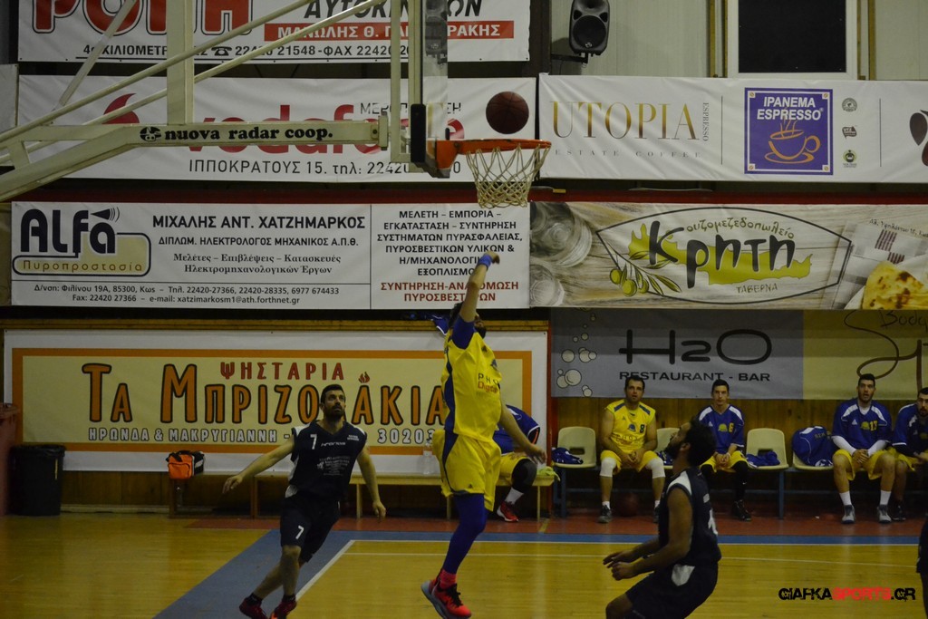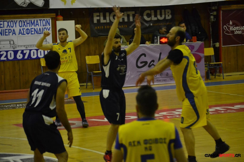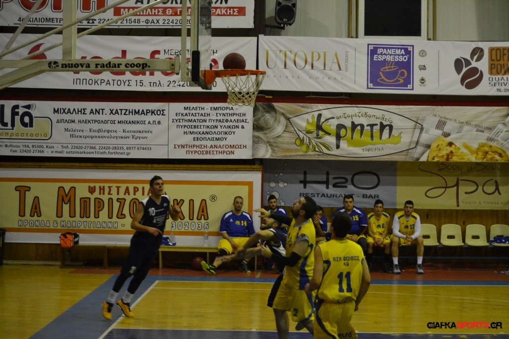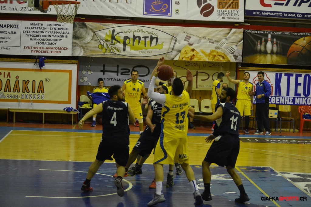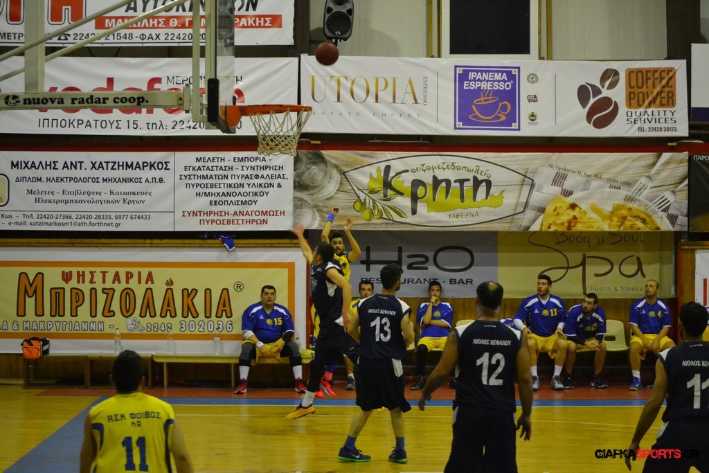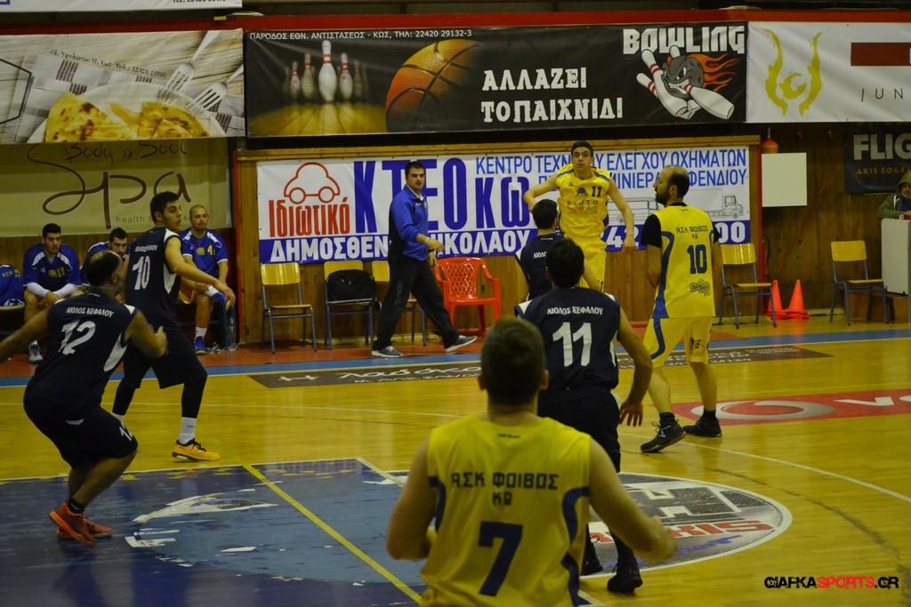 Με νίκη ολοκλήρωσε τις αγωνιστικές υποχρεώσεις του στην κανονική περίοδο του ανδρικού πρωταθλήματος ο Αίολος Κεφάλου, ο οποίος κέρδισε εύκολα στο β’ ημίχρονο το Φοίβο Κω με 54-35. Οι τυπικά γηπεδούχοι αιφνιδίασαν τον Αίολο στο α’ δεκάλεπτο (11-4), αλλά στη συνέχεια η ομάδα του Δημήτρη Μαράγκα συνήλθε και ανέβασε στροφές, κάνοντας επιμέρους σκορ 4-16 στο β’ δεκάλεπτο, οπότε πήγε στα αποδυτήρια με +5 (15-20). Στην ανάπαυλα ενσωματώθηκε με τον Αίολο και ο Αντώνης Σάζαλης και οι Κεφαλιανοί βρήκαν περισσότερες λύσεις παίρνοντας τη νίκη. Με τον Αίολο δεν έπαιξε ο τραυματίας Δημήτρης Σάζαλης, ενώ τώρα η ομάδα θα αντιμετωπίσει την ισχυρή Α.Ε. Δικαίου στα πλέι-οφ.