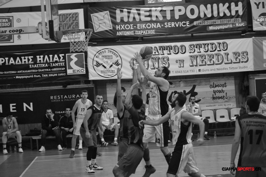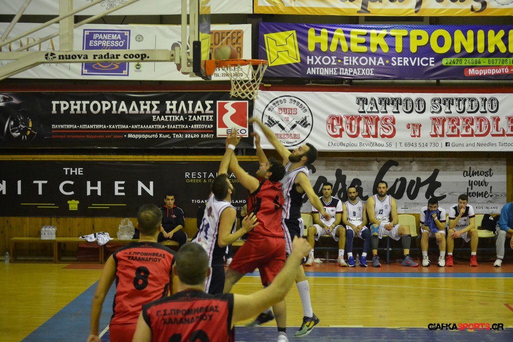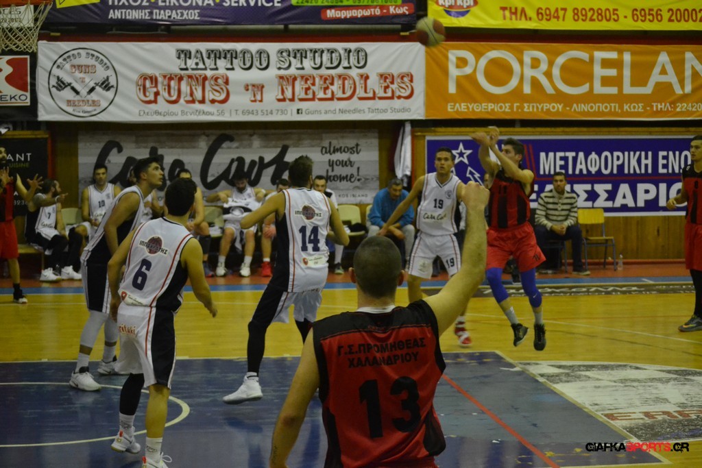 Σε ρυθμούς… προπόνησης ο Ιπποκράτης Κω κέρδισε με 79-45 τον Προμηθέα Χαλανδρίου στο εξ αναβολής παιχνίδι της 9ης αγωνιστικής στον 2ο όμιλο νότου της Γ’ Εθνικής και ανέβηκε στο ρετιρέ του βαθμολογικού πίνακα. Η… χαώδης διαφορά δυναμικότητας έγινε ορατή με το «καλημέρα», με τον Μιχάλη Καπλανίδη μάλιστα να κάνει… rotation, προκειμένου να ξεκουράσει τους βασικούς παίκτες του εν όψει Ο.Φ.Η. (Σάββατο 18:00) και Πόλις Καλλιθέας (Τετάρτη 17:00). Μάλιστα σκόραραν όλοι οι παίκτες της κωακής ομάδας, η οποία έπαιξε καλό μπάσκετ απέναντι στη χειρότερη ίσως ομάδα του ομίλου και μετά το αρχικό 2-3, έκανε το σκορ 11-3 (6’) και 20-7 στο δεκάλεπτο. Με όπλο την καλή άμυνα το σκορ έγινε 27-7 (14’) και 35-12 (18’) για να λήξει το ημίχρονο με 37-15.