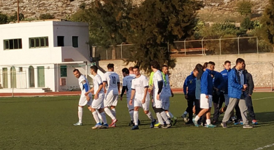 Οι γηπεδούχοι κατάφεραν να προηγηθούν νωρίς στο ματς αφού μόλις στο 4ο λεπτό ο Κλειδαράς έκανε το 1-0 για την ομάδα του. Ο ΠΑΟΚ Κω που είχε καλές στιγμές στην αναμέτρηση κατάφερε να φέρει το παιχνίδι στα ίσια με γκολ του Κοτοπούλη στο 23′ ο οποίος έκανε το 1-1 όμως οι Καλύμνιοι πριν το ημίχρονο σκόραραν ακόμη δύο φορές , με τον Κάννη στο 27′ και με τον Φράγκο στο 35′ και πήγαν στα αποδυτήρια με το υπέρ τους 3-1.