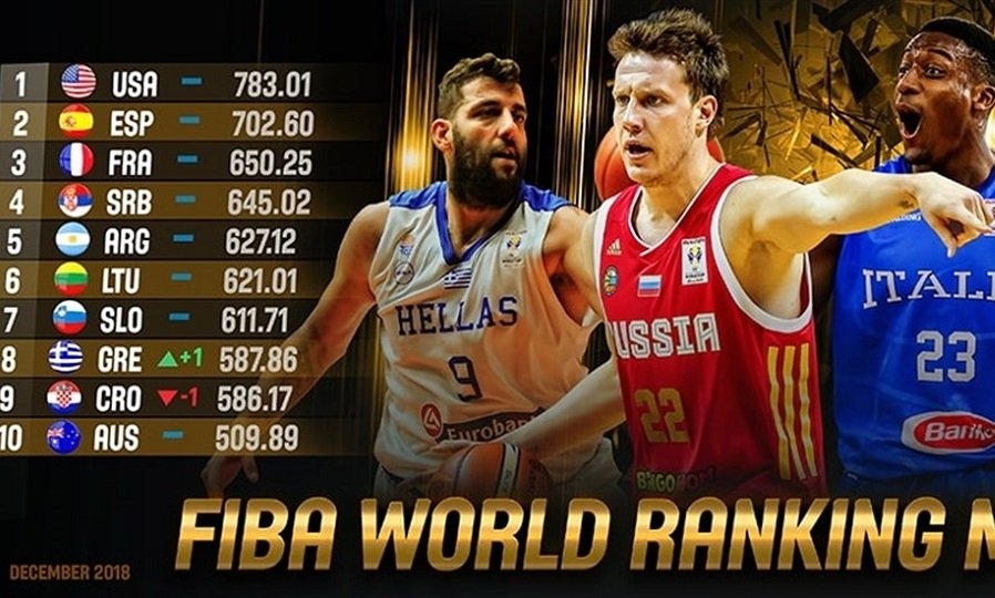 Τις θέσεις των εθνικών ομάδων στο παγκόσμιο ranking ανακοίνωσε η FIBA. Η Εθνική μας ομάδα χάρη στις νίκες που σημείωσε στα προκριματικά (9-1), κατάφερε να αναίβει κι άλλο στην ειδική βαθμολογία και πήρε την 8η θέση. Στην κορυφή της βαθμολογίας παρέμεινε η Αμερική και η κατάταξη διαμορφώθηκε ως εξής: