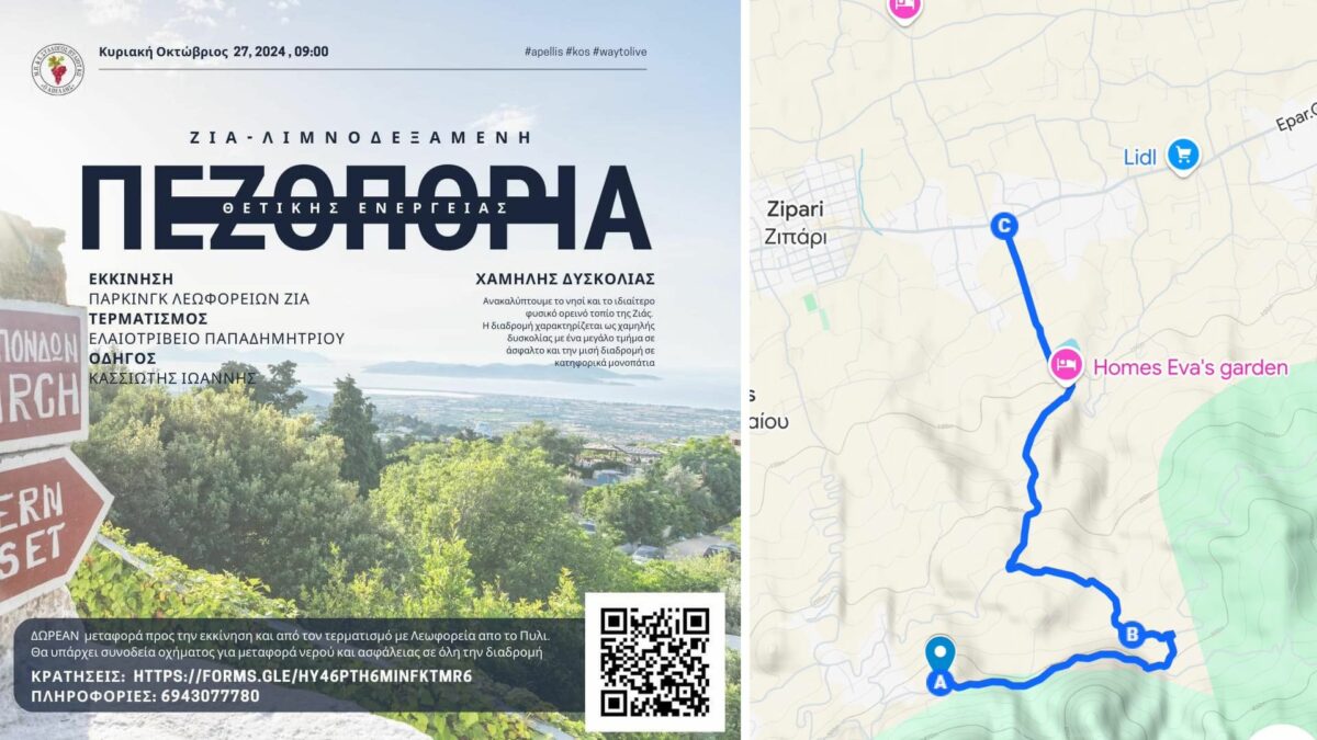 Ζηπάρι, στροφή προς Ζιά :9:15Η επιστροφή θα γίνει από το Ελαιοτριβείο Παπαδημητρίου