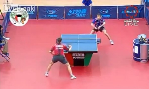 Σε τουρνουά πινγκ πονγκ που διεξάγεται στο Κουβέιτ, ο Γάλλος Κουεντίν Ρομπινό πέτυχε έναν απίστευτο πόντο στον Λευκορώσο Κίριλ Μπαραμπάνοφ.