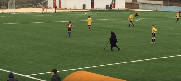 Viral έχει γίνει μια Ελληνίδα γιαγιά από τη Θεσπρωτία, η οποία ξαφνικά μπήκε στο γήπεδο σε αγώνα παιδικού πρωταθλήματος αναγκάζοντας τον διαιτητή να διακόψει το ματς.