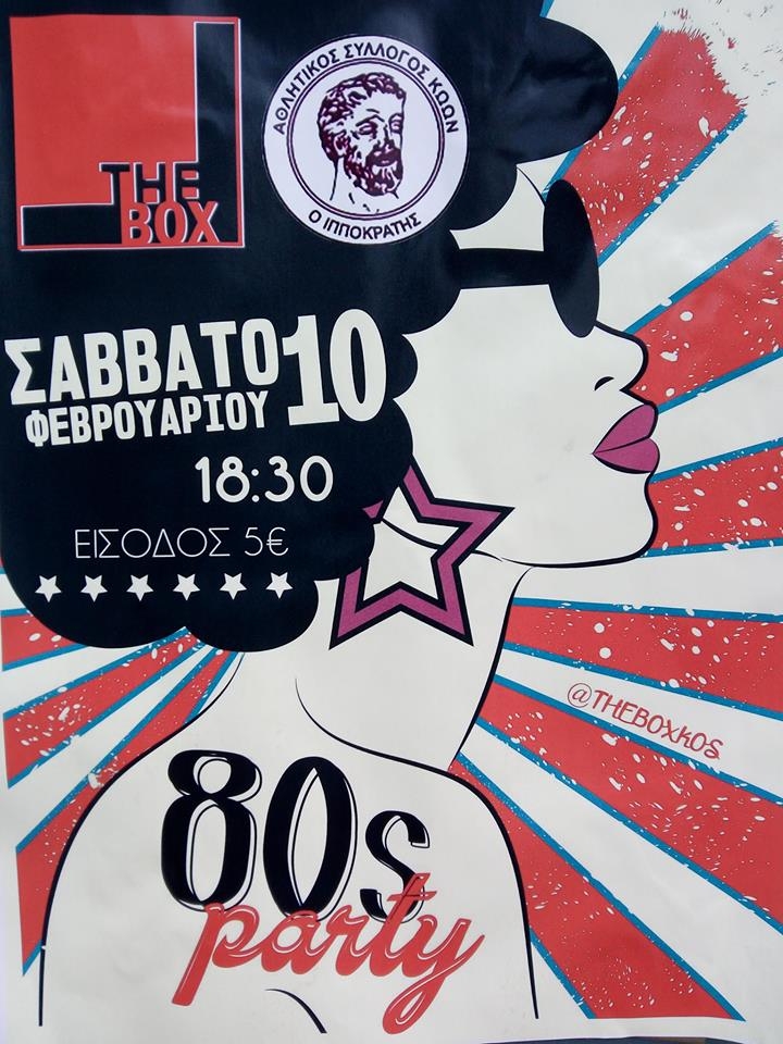 Ο Α. Σ. Ιπποκράτης Κω διοργανώνει το Σάββατο 10 Φεβρουαρίου και ώρα 18.30, στο φιλόξενο χώρο του Box, αποκριάτικο πάρτυ για μικρούς και μεγάλους! Ελάτε να διασκεδασουμε με μουσική 80 ‘s, με ή χωρίς την αποκριάτικη στολή σας, αλλά με κέφι και όρεξη για πολύ χορό!