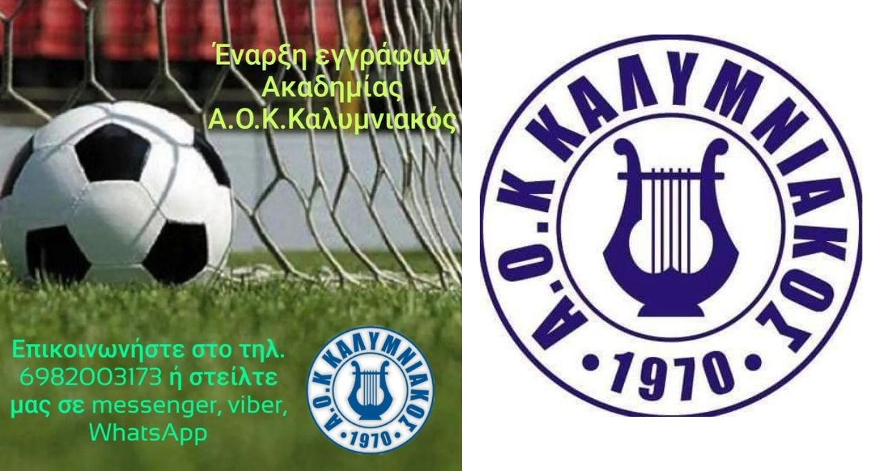 ”Ο Α.Ο.Κ.Καλυμνιακος ανακοινώνει την έναρξη εγγράφων για την Ακαδημία της ομάδας. Προπονητής ακαδημιών Χατζησμαλης Γιώργος”.