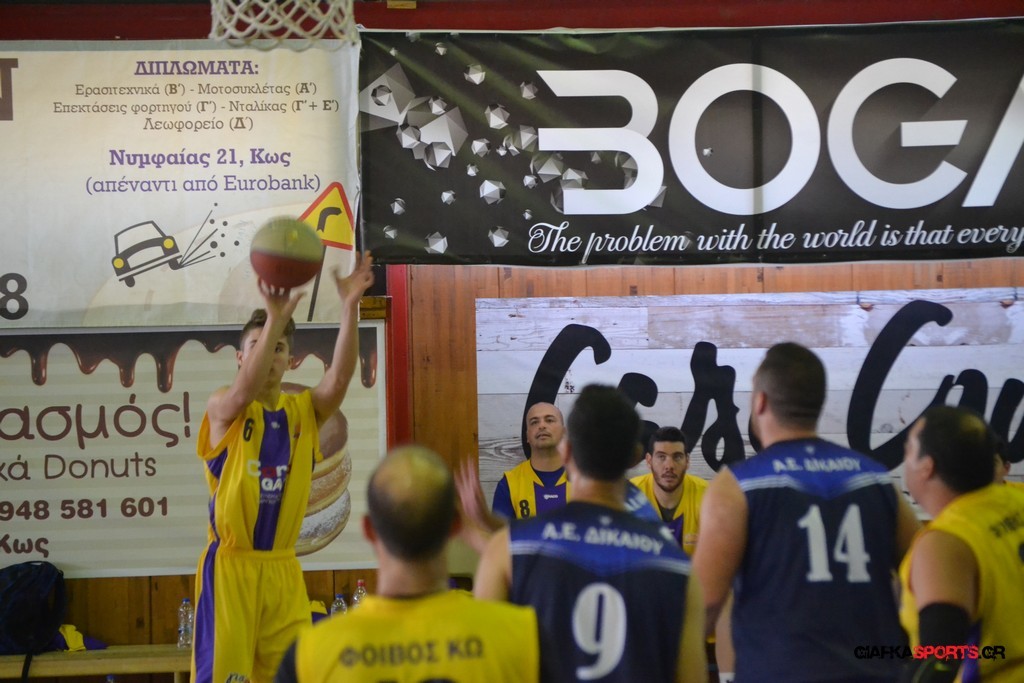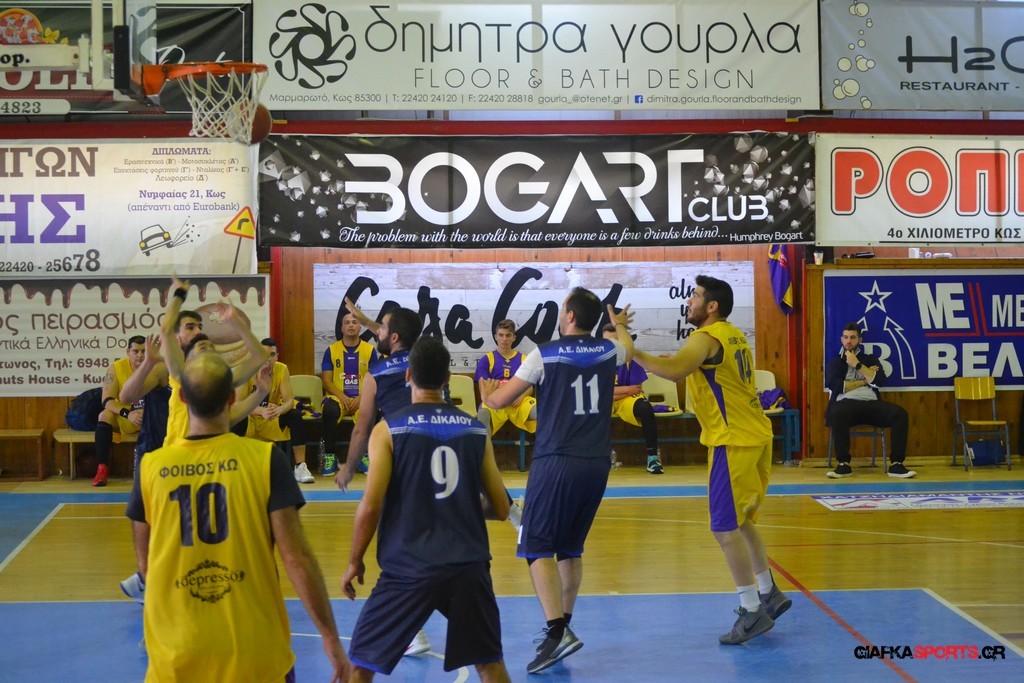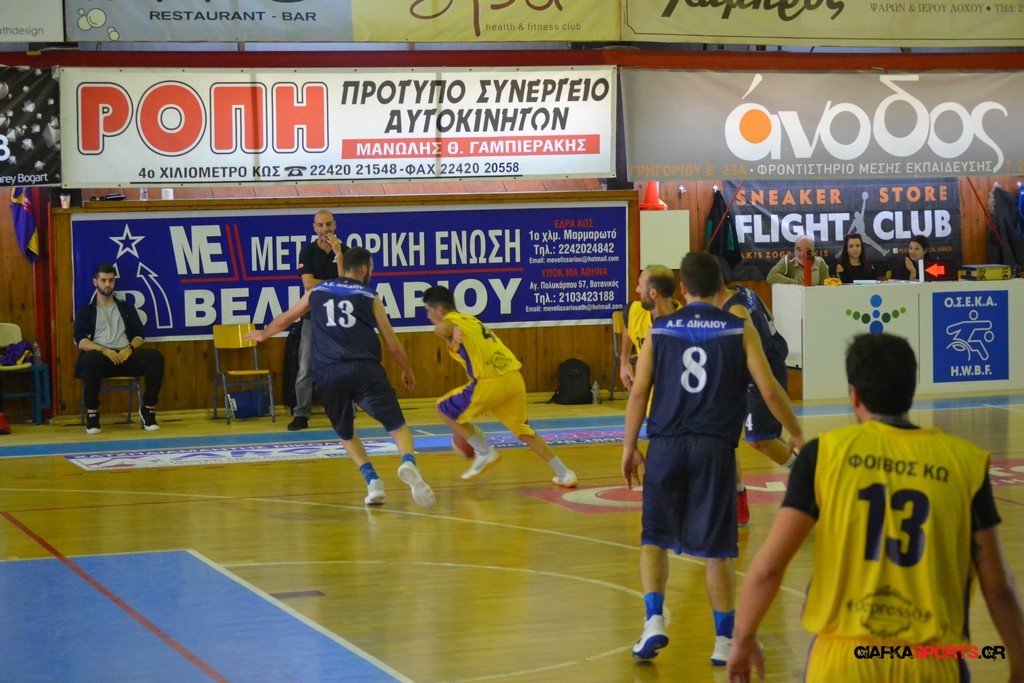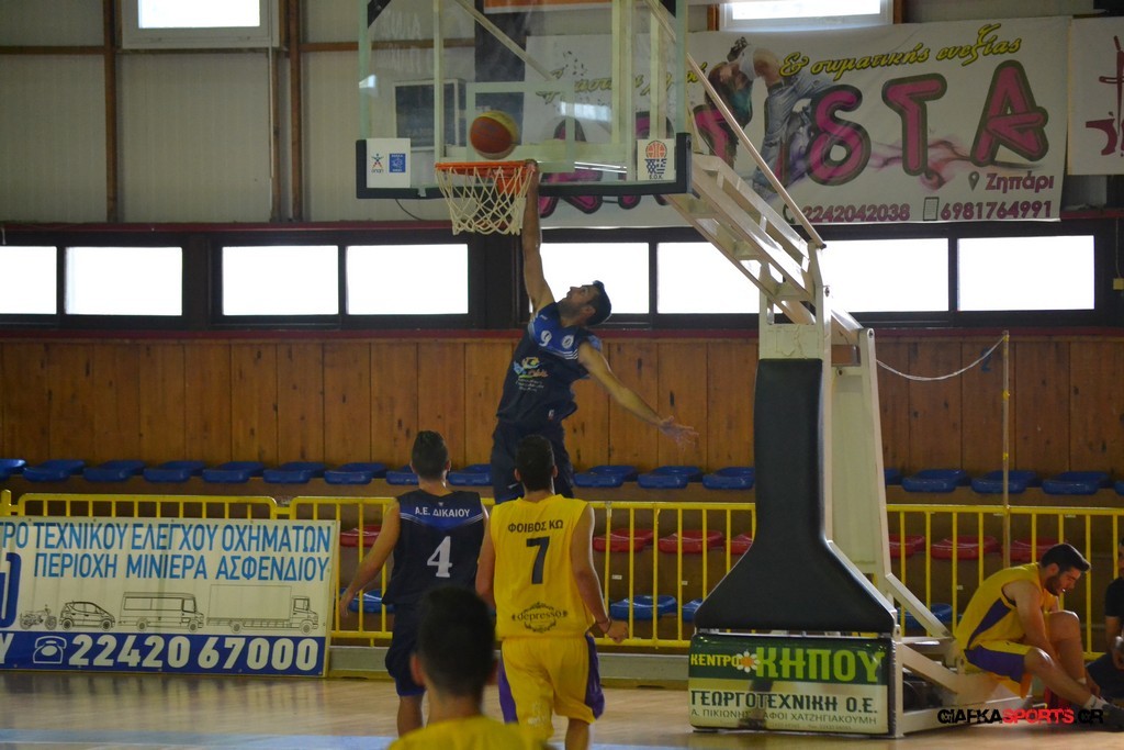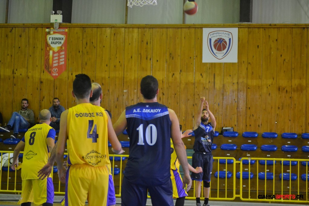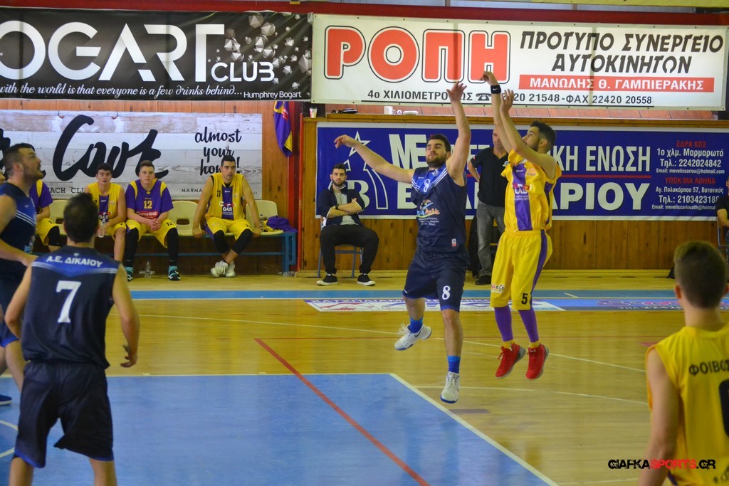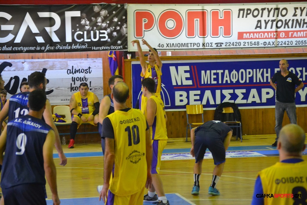 Το 4/4 έκανε η Α.Ε Δικαίου που επικράτησε με 40-81 του Φοίβου και ολοκλήρωσε έτσι με νίκες τον πρώτο γύρο. Η ομάδα του Δημήτρη Τζομάκα κατάφερε στο δεύτερο δεκάλεπτο να ανοίξει την διαφορά και να πάει στο ημίχρονο 24-43 ενώ εντυπωσιακή ήταν και στο τρίτο και με επιμέρους σκορ 8-28 ανέβασαν την διαφορά στο 32-71. Από εκεί και πέρα το παιχνίδι ήταν τυπική διαδικασία με τον Δίκαιο να χαλαρώνει και το ματς να λήγε με 40-81.