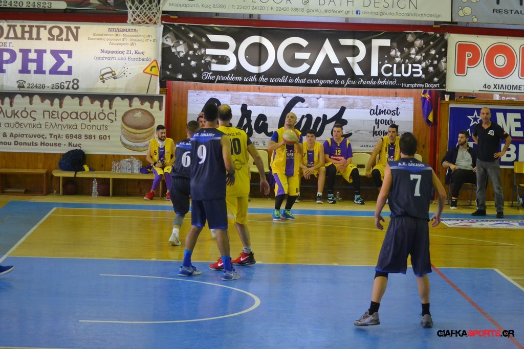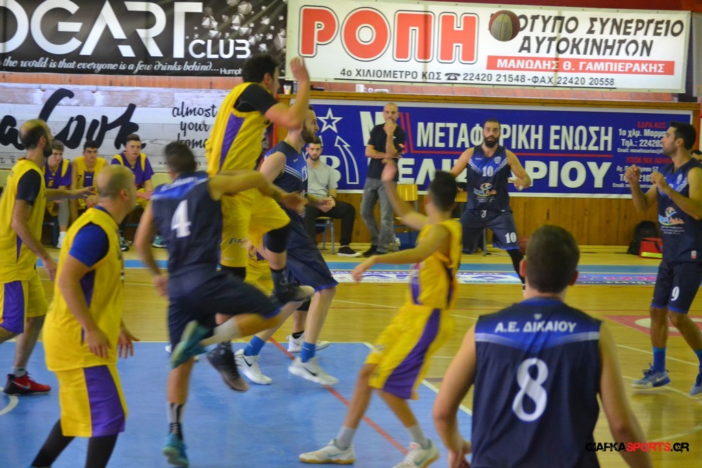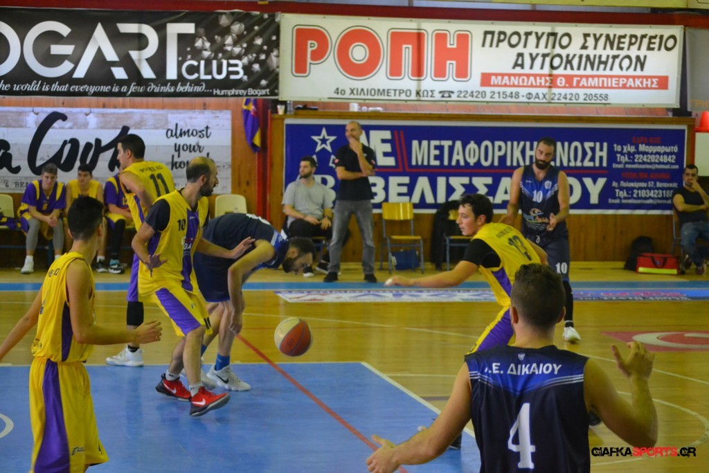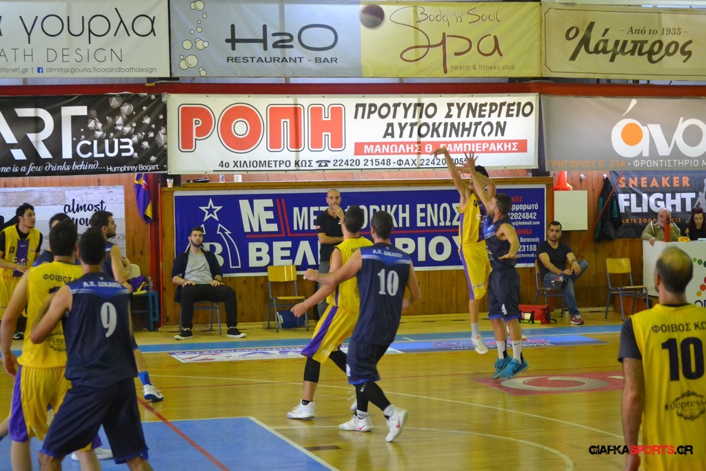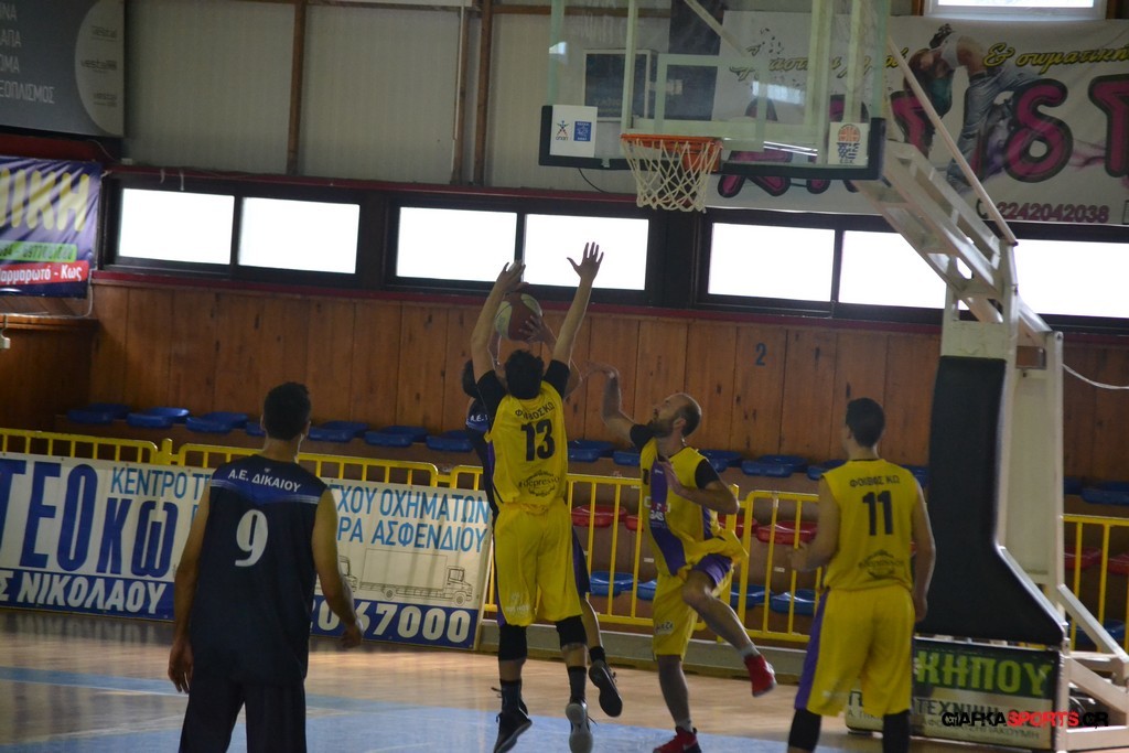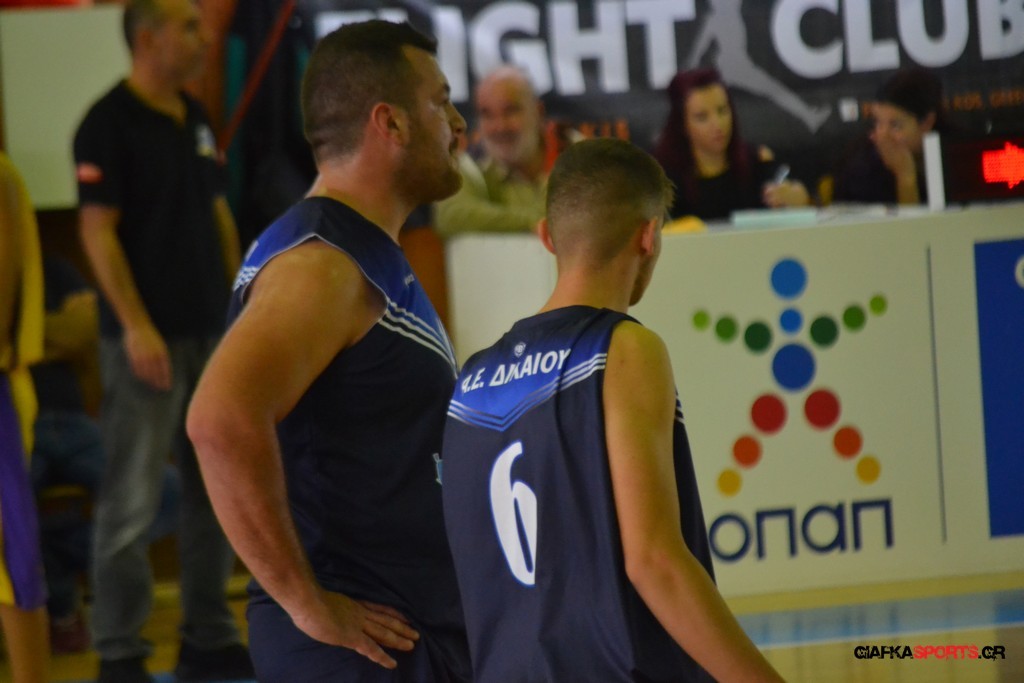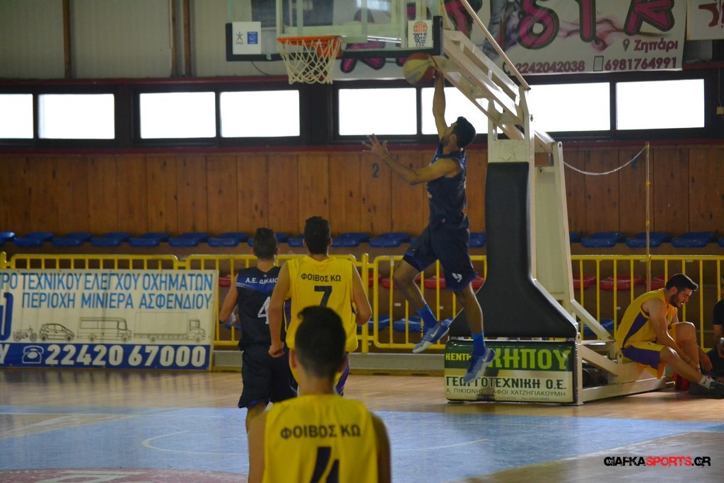 Το 4/4 έκανε η Α.Ε Δικαίου που επικράτησε με 40-81 του Φοίβου και ολοκλήρωσε έτσι με νίκες τον πρώτο γύρο. Η ομάδα του Δημήτρη Τζομάκα κατάφερε στο δεύτερο δεκάλεπτο να ανοίξει την διαφορά και να πάει στο ημίχρονο 24-43 ενώ εντυπωσιακή ήταν και στο τρίτο και με επιμέρους σκορ 8-28 ανέβασαν την διαφορά στο 32-71. Από εκεί και πέρα το παιχνίδι ήταν τυπική διαδικασία με τον Δίκαιο να χαλαρώνει και το ματς να λήγε με 40-81.