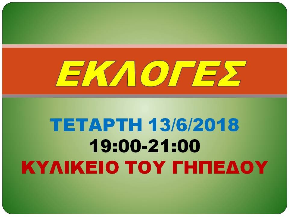 Την Τετάρτη 13/6/2018 και από ώρα 7-9 μμ, στο κυλικείο του γηπέδου θα γίνουν εκλογές για την ανάδειξη νέου ΔΣ της ΑΚΑΔΗΜΙΑΣ. Δικαίωμα εκλέγειν και εκλέγεσθαι έχουν όλα τα μέλη που είναι οικονομικά ενήμερα. Όσοι επιθυμούν να θέσουν υποψηφιότητα θα πρέπει να το δηλώσουν σε οποιοδήποτε μέλος του απερχόμενου ΔΣ μέχρι το πέρας της Γενικής Συνέλευσης