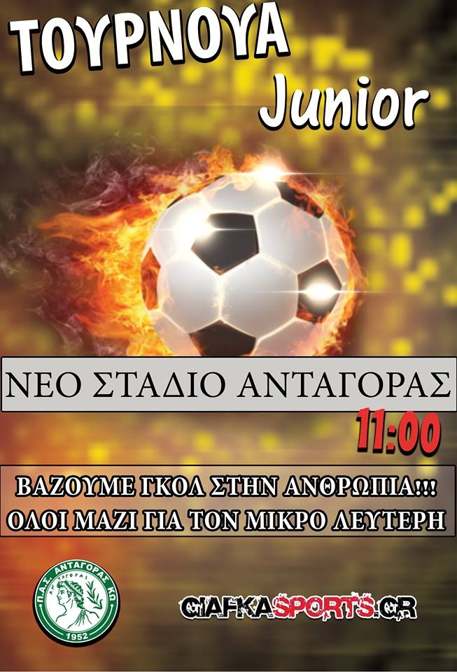 Με πρωτοβουλία του Ανταγόρα την ερχόμενη Κυριακή θα πραγματοποιηθεί τουρνουά Junior (2008-2009) υπό την αιγίδα της ΕΠΣ Δωδεκανήσου στο Νέο στάδιο Ανταγόρας για τον μικρό Λευτέρη.
