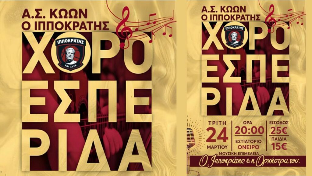 Χοροεσπερίδα διοργανώνει η ομάδα του Ιπποκράτη την ερχόμενη Τρίτη 24 Μαρτίου στο εστιατόριο Όνειρο.